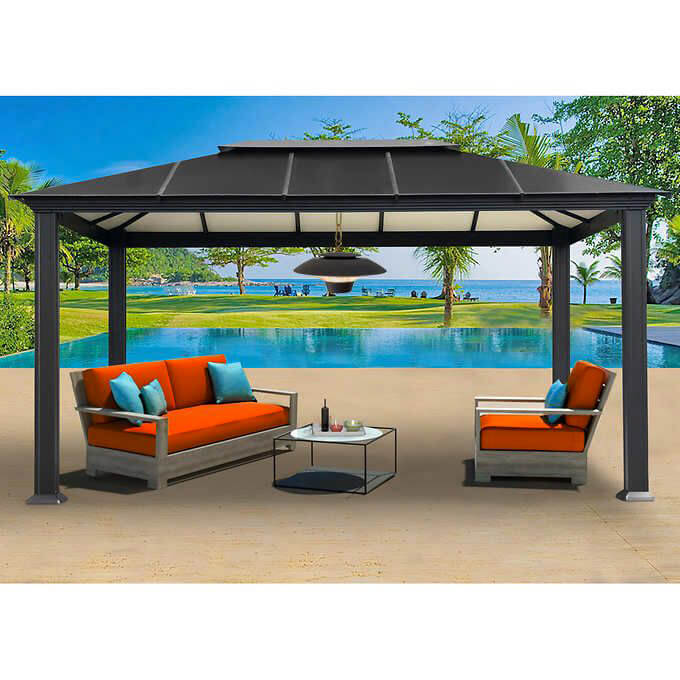 - Mit der mitgelieferten Kette und dem Haken lässt sich der Heizstrahler einfach am Pavillon oder an der Decke befestigen