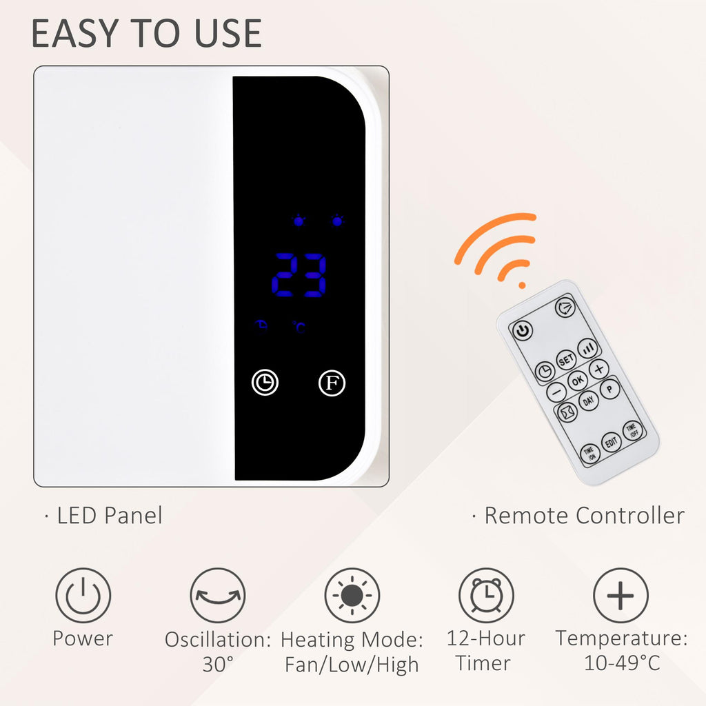 Sie haben wenig Platz zur Verfügung? Diese elektrische Wandheizung ist die ideale Lösung zum Heizen Ihrer Räume. Die Keramiktechnologie bietet 2 verschiedene Heizstufen und Heizmodi und dank der Fernbedienung können Sie die Einstellungen der Elektroheizung aus der Ferne vornehmen. Sehen Sie alle Einstellungen auf dem LED-Display und passen Sie mit dem 12-Stunden-Timer die Betriebszeit an, um Energie zu sparen. Verbringen Sie einen warmen Winter mit Ihrem neuen Heizlüfter.