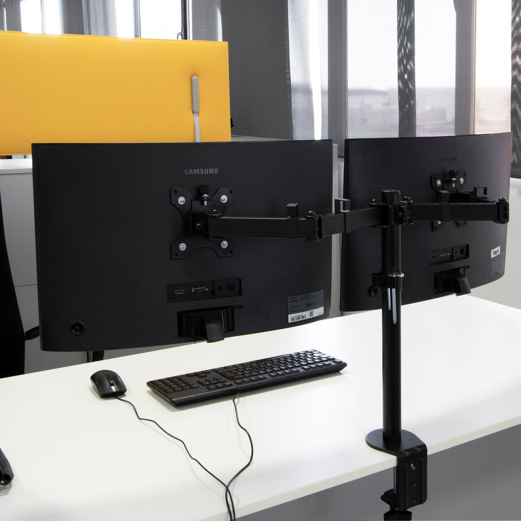 - Unterstützung für zwei PC-Tischmonitore von 13 bis 32 Zoll bis zu 8 kg pro Arm mit VESA 75 x 75 mm oder 100 x 100 mm.