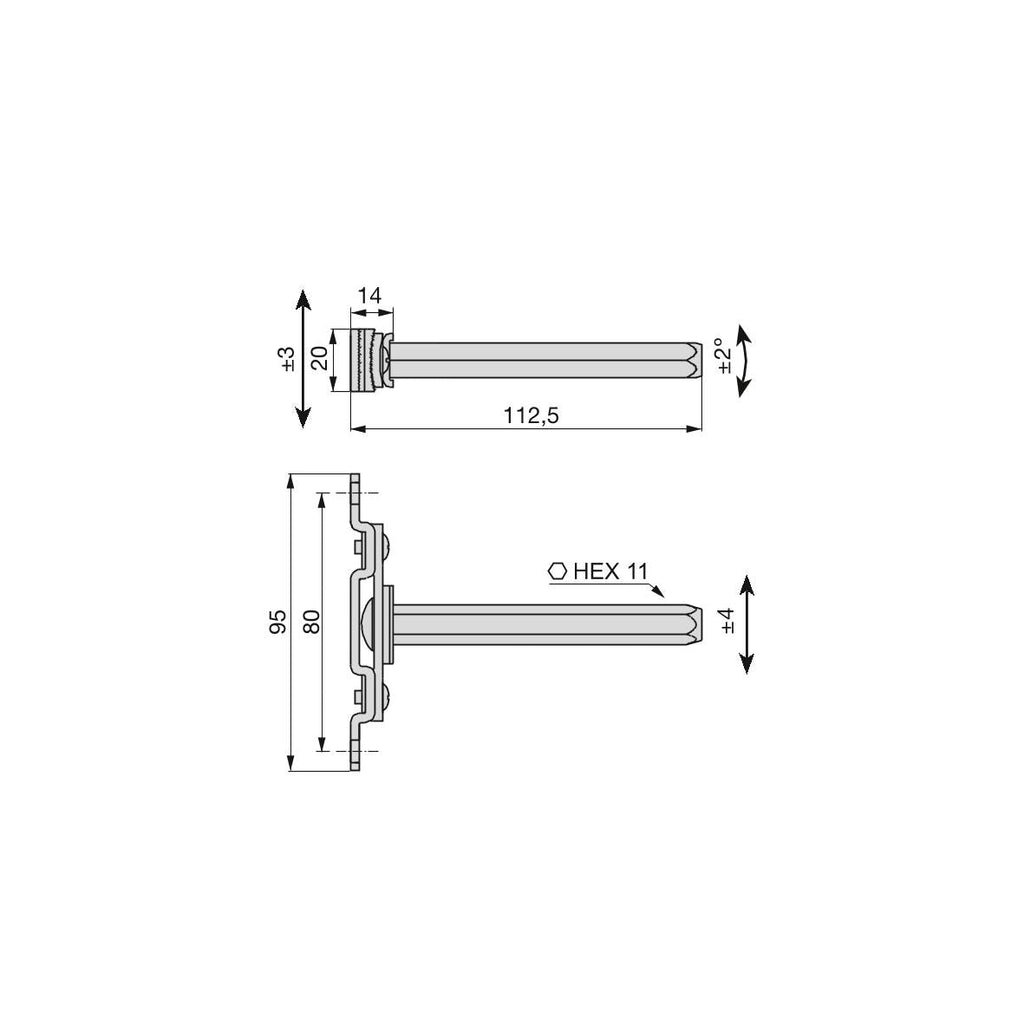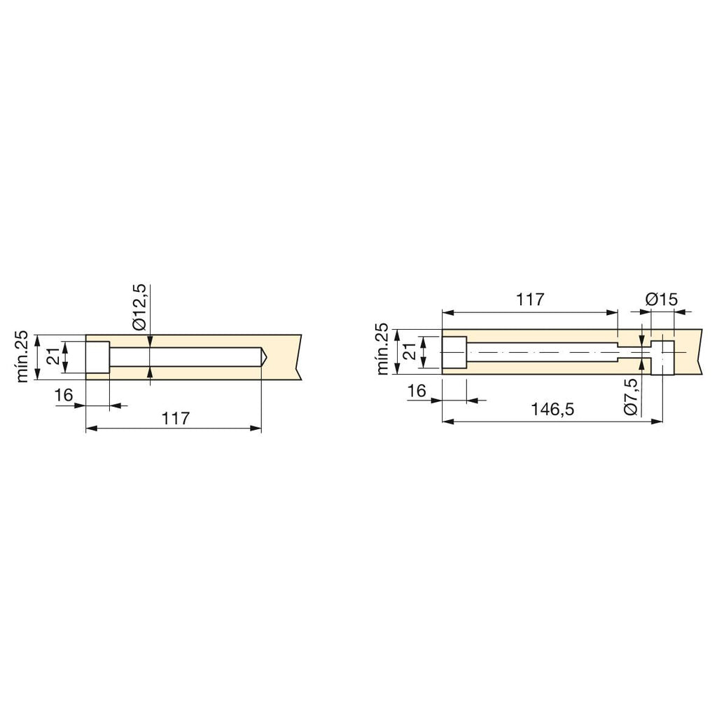 - Verwenden Sie für eine größere Steifigkeit der Halterung einen Ø15-Exzenter mit M6-Stift.