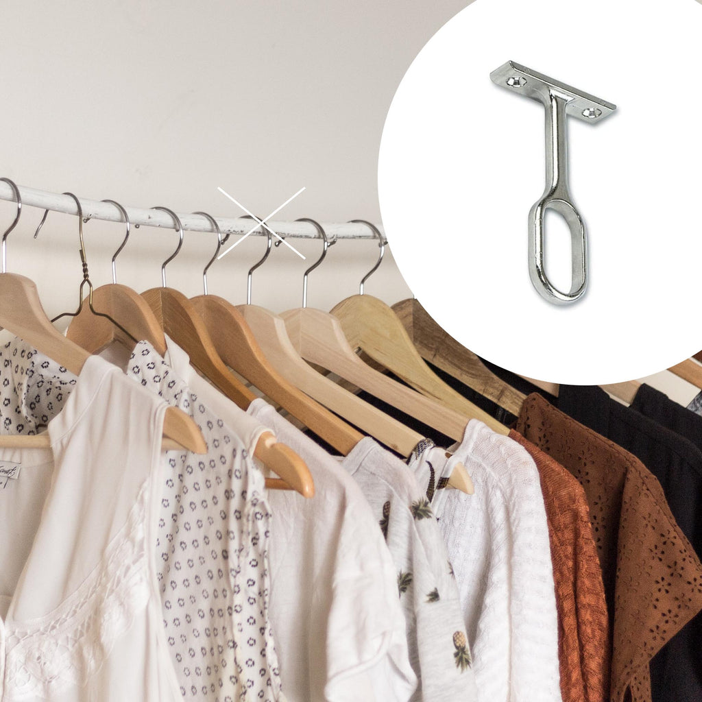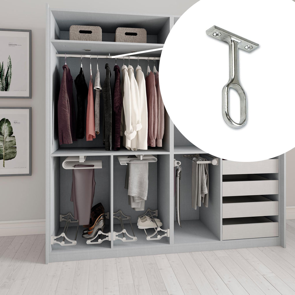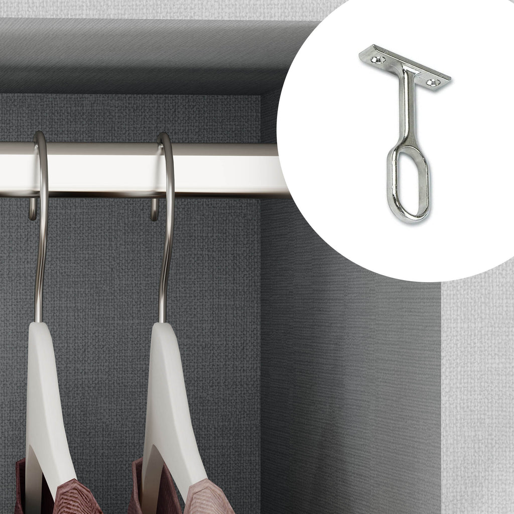 10er-Set Mittelstütze für Garderobenstange aus Zamak und in vernickelter und aluminiumlackierter Ausführung erhältlich.