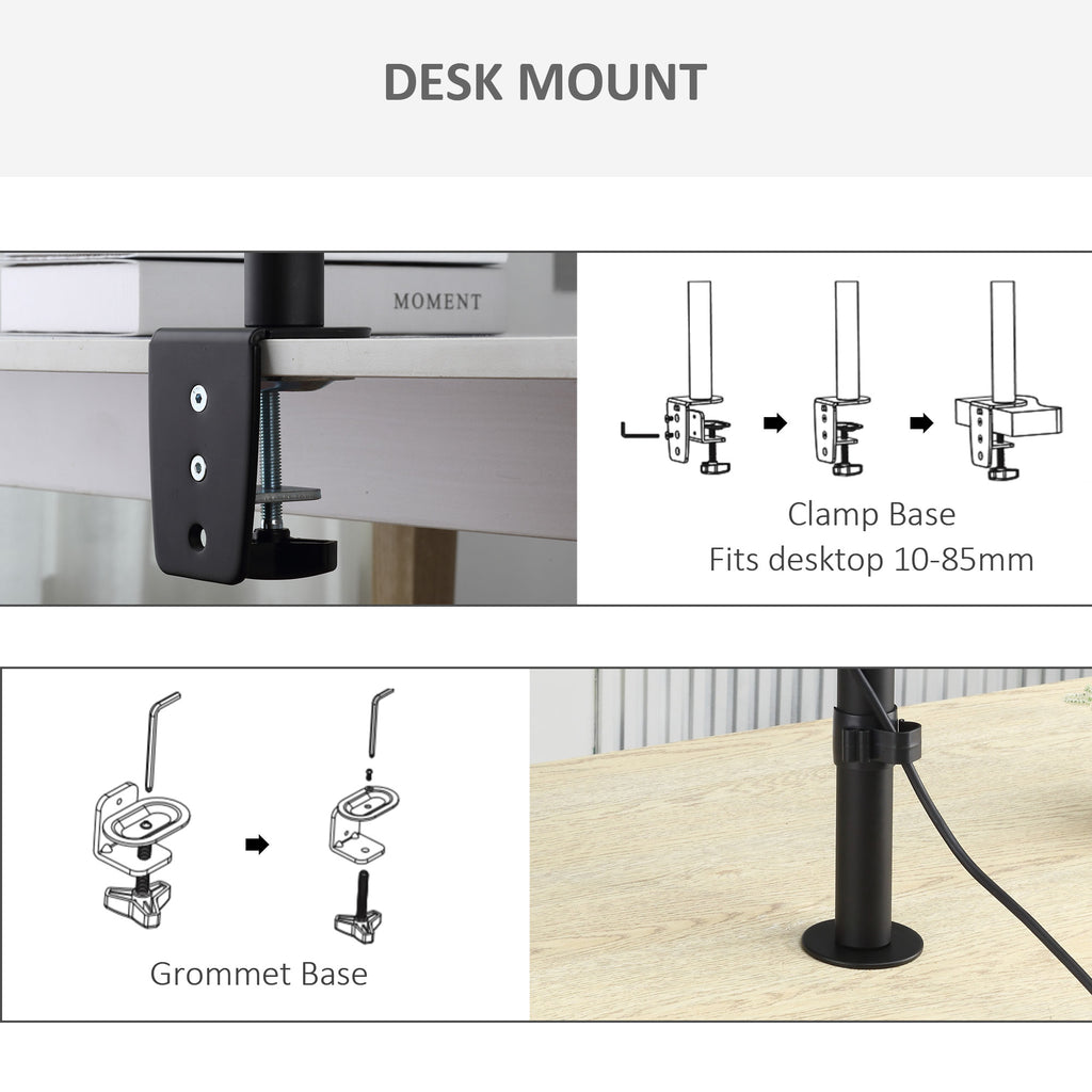 - KOMPATIBEL: Die Halterung ist geeignet für Monitore von 13" bis 32", die weniger als 8kg wiegen und über einen 75x75mm und 100x100mm VESA Anschluss verfügen. Die Klemme ist für Schreibtische mit einer 10-85 mm dicken Arbeitsplatte geeignet. Ständerabmessungen: 47L x 11,5T x 52Hcm.