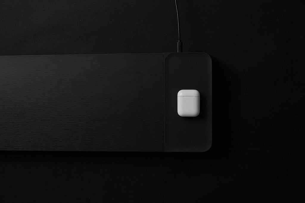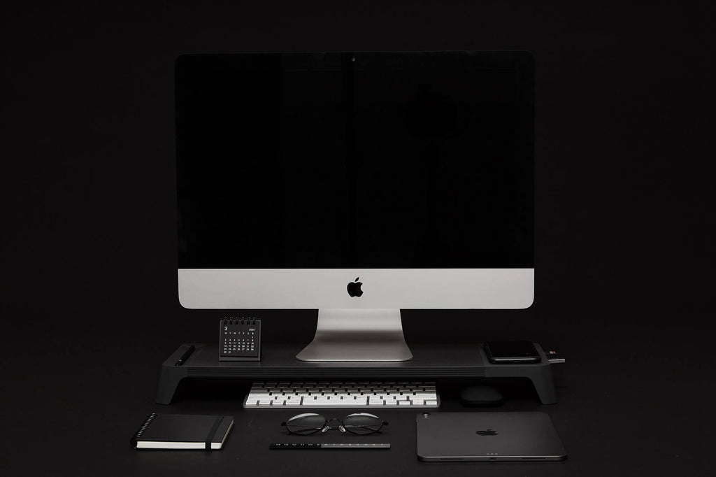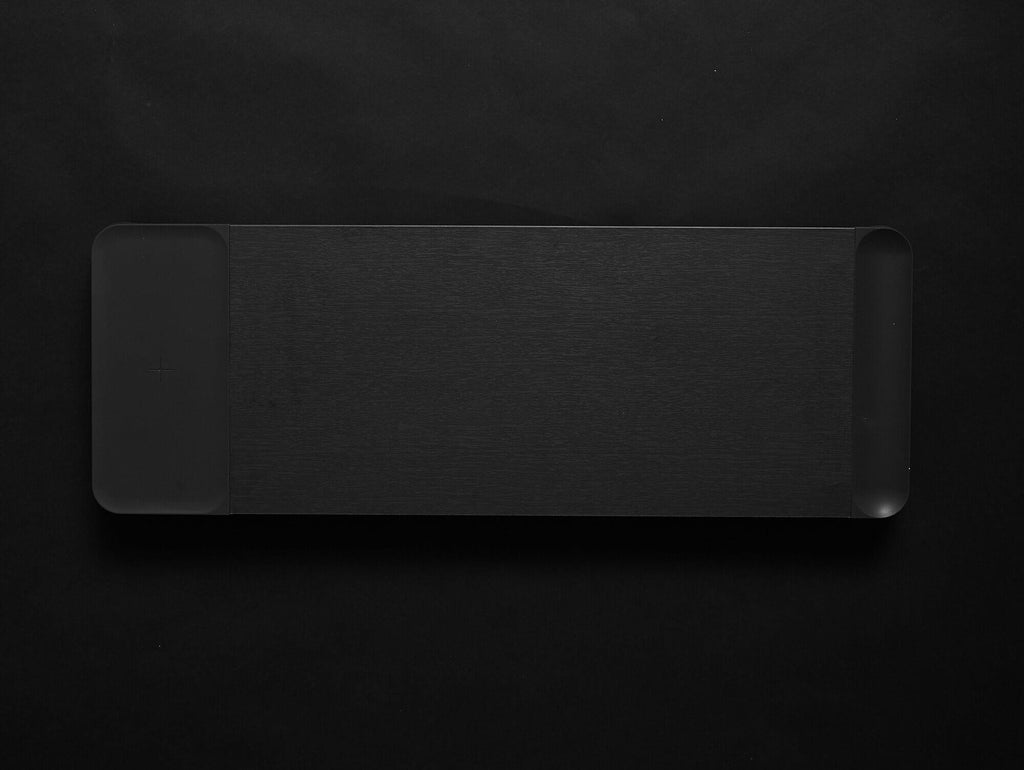 Schreibtisch-Monitorständer 56 x 20 x 5,7 cm mit USB-Eingang und schwarzer kabelloser Ladestation