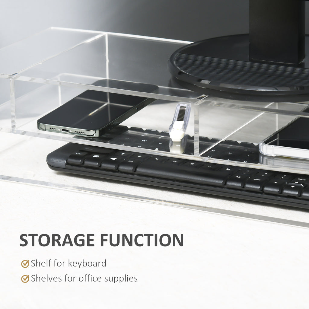 Supporto Monitor PC con Scomparti Centrali 57x19x11,5 cm in Acrilico Trasparente