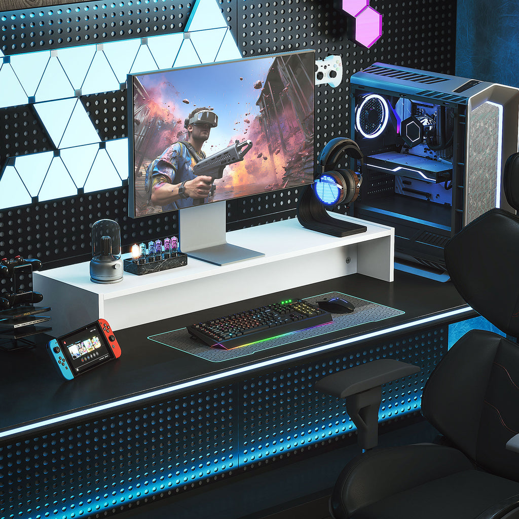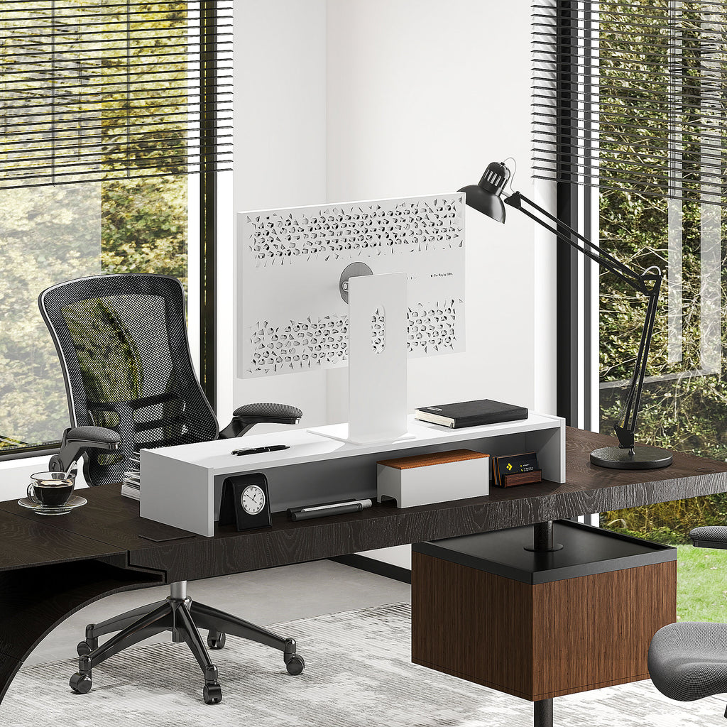 - SPAZIO DI LAVORO ORGANIZZATO: Dotato di due spazi inferiori, questo porta monitor PC permette di tenere in ordine la cancelleria, come blocchi per appunti e penne, ottimizzando lo spazio sulla scrivania