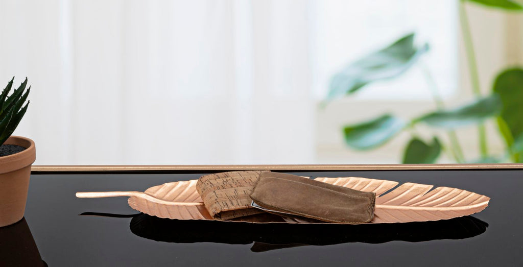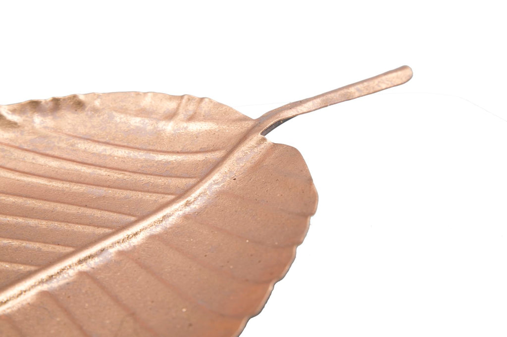 - Svuota tasche in metallo color rame a forma di foglia, estetica e funzionalità
