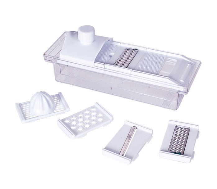 Ein unverzichtbares Accessoire für Ihre Küche! Dank dieses Hobels können Sie saftige, gesunde und fantasievolle Gerichte zubereiten. Geeignet zum Schneiden von Obst, Gemüse und Gemüse durch Auswahl aus 5 verschiedenen Schnittarten. Aber das ist noch nicht alles, neben den mitgelieferten Klingen ist auch ein praktischer Entsafter im Lieferumfang enthalten, um frische Getränke für Ihre Kinder oder Gäste zuzubereiten. Einfach zu bedienen und sofort einsatzbereit, wählen Sie einfach den Klingentyp für den gewünschten Schnitt und Sie erhalten in wenigen Sekunden perfekte Schnitte. Sie können alle Salate zubereiten.