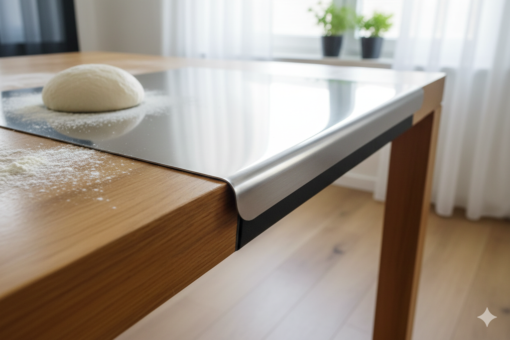 Die Edelstahlplatte verleiht Ihrer Küche eine professionelle Note und schützt sie bei Ihren kulinarischen Abenteuern.