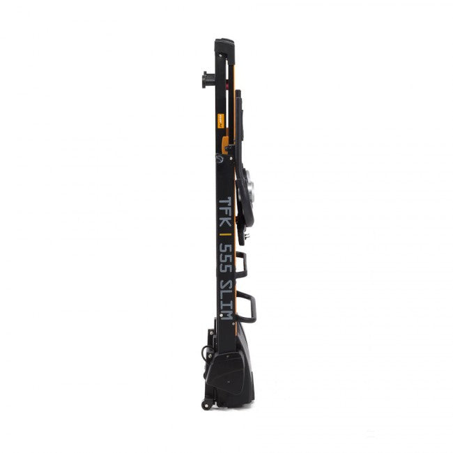 TFK 555 Slim von Everfit ist eines der neuen Produkte in der platzsparenden Everfit-Linie. Ausgestattet mit allem Komfort ist das TFK 555 Slim ein kompaktes Laufband, das in geschlossener Position eine Dicke von weniger als 26,00 cm vom Boden erreicht . Das brandneue, einfache Öffnungs-/Schließsystem TFK 555 ermöglicht es Ihnen, auf dem Laufband zu trainieren und es in wenigen Augenblicken vollständig bequem und sicher zu schließen, ohne dass Sie Werkzeuge verwenden müssen.