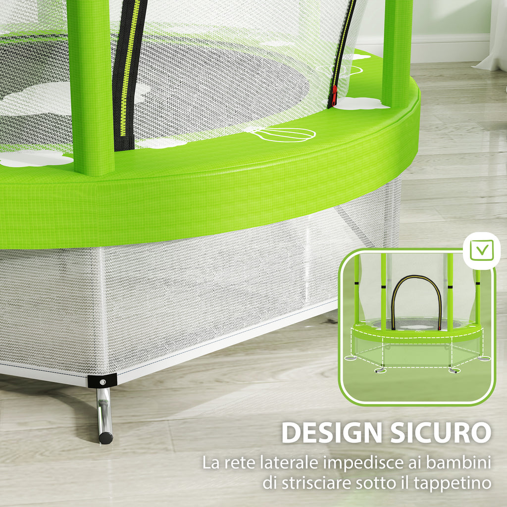 Tappeto Elastico per Bambini 3-6 Anni Ø140x190 cm con Rete di Sicurezza Verde