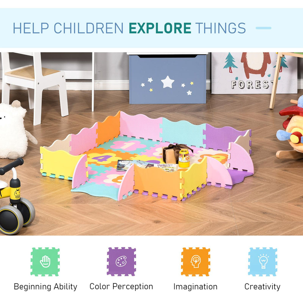 Die Puzzlematte ist vielseitig und Sie können sie für verschiedene Anlässe verwenden. Es ist perfekt für Kinder zum Spielen auf einer weichen, rutschfesten Oberfläche, die leicht zu reinigen und einfach zu montieren ist. Die EVA-Matte kann dank ihrer Vibrationsdämpfung auch für die Gymnastik zu Hause verwendet werden. Schaffen Sie mit diesem Teppich einen bequemen und sicheren Bereich für Ihre Kinder!