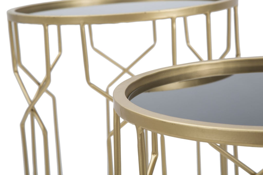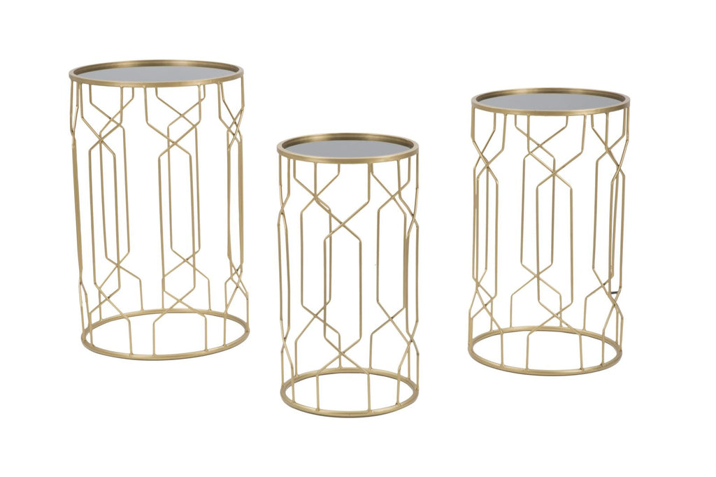 Glam Lignes Tris Ø40x63-35x57,5-30x53,5 cm Tische aus Eisen und Goldglas