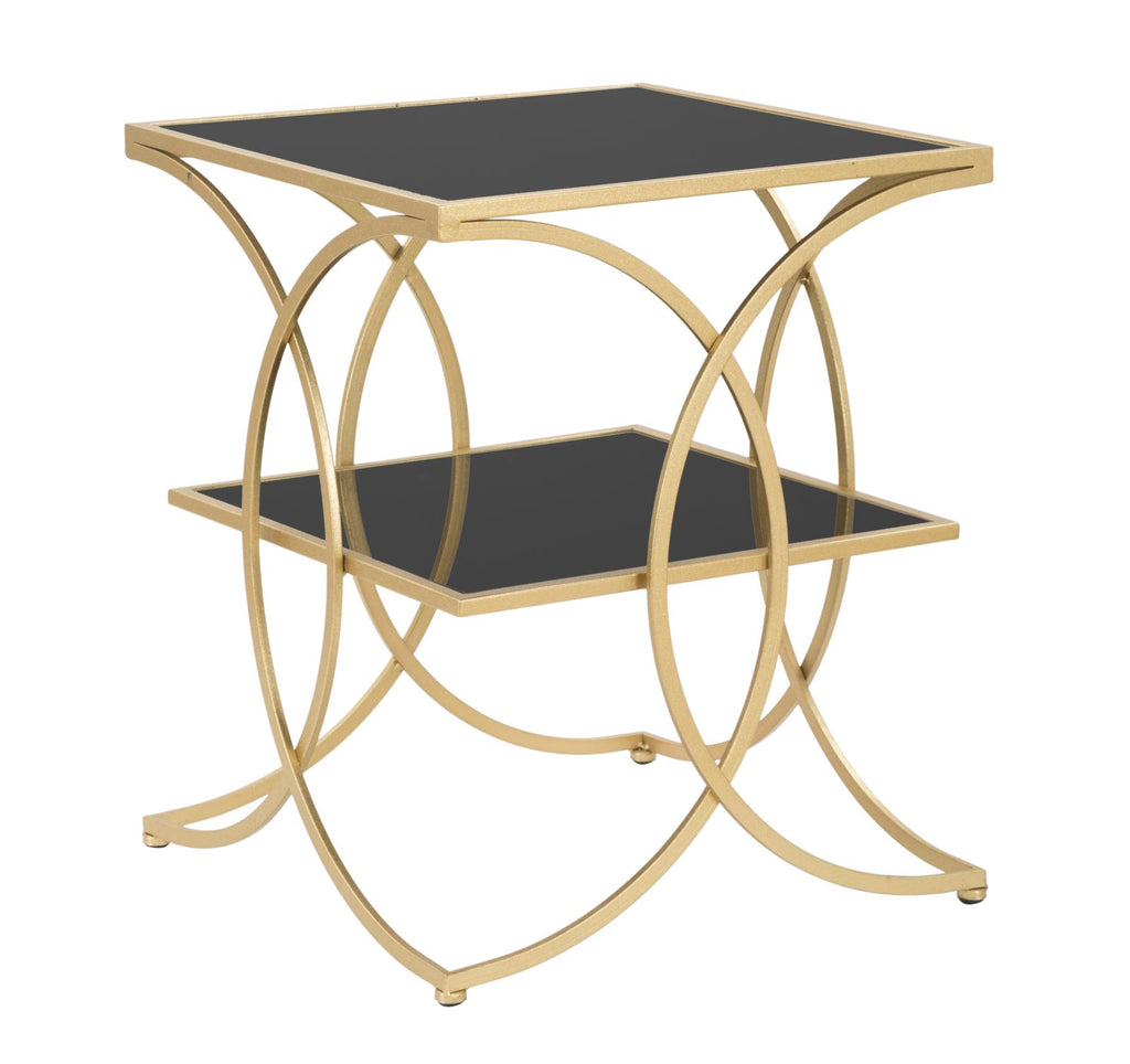Doppel-Couchtisch 45 x 45 x 55 cm aus MDF-Eisen und Spiegel in Gold und Schwarz