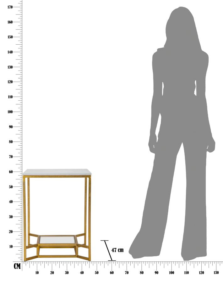 Doppel-Couchtisch aus Marmor 47 x 47 x 60 cm aus Eisen und Glas und Gold und weißem Marmor