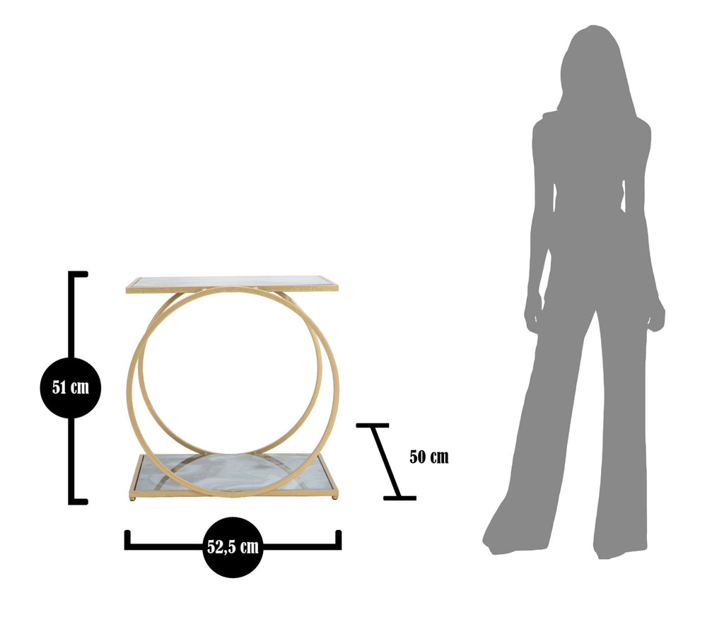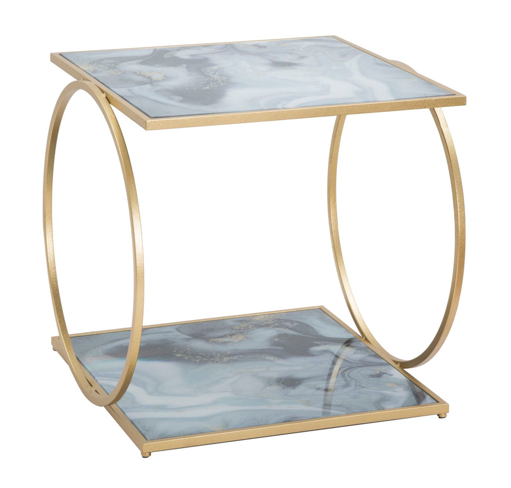 Glam Couchtisch mit 2 Ebenen 52,5 x 50 x 51 cm aus MDF-Eisen und Gold und mehrfarbigem Glas