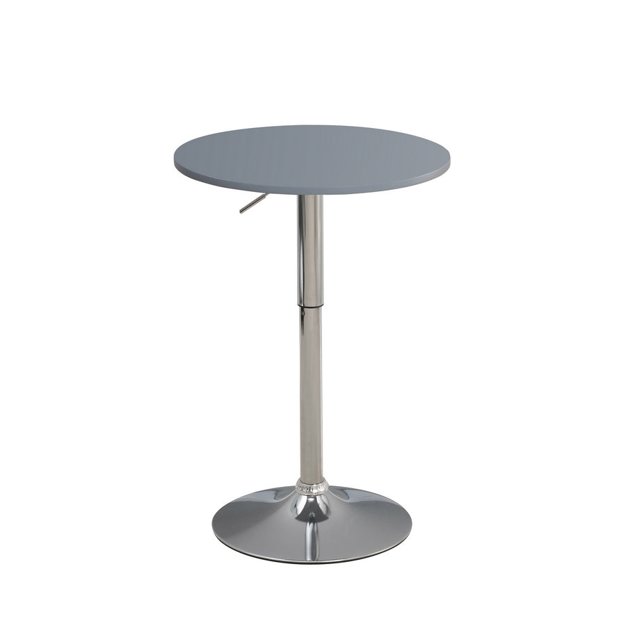 Il nostro tavolino salotto alto, ha uno stile moderno semplice ed elegante, perfetto per ogni tipo ambiente e arredo. Goditi questo tavolo da colazione bevendo il caffè nei momenti di relax. Questo tavolo alto è dotato di un pistone a gas, fluido e silenzioso per poter adattare il tavolino ad ogni tipo di situazione con l'altezza della quale hai bisogno, da 70 cm a 90, con un semplicissimo sistema attivabile grazie alla leva posta sotto il piano. Il piano dal diametro di 60 cm in MDF grigio è l'ideale per ogni ambiente sia privato che pubblico, come un bar o ristorante, da abbinare a dei semplici sgabelli.