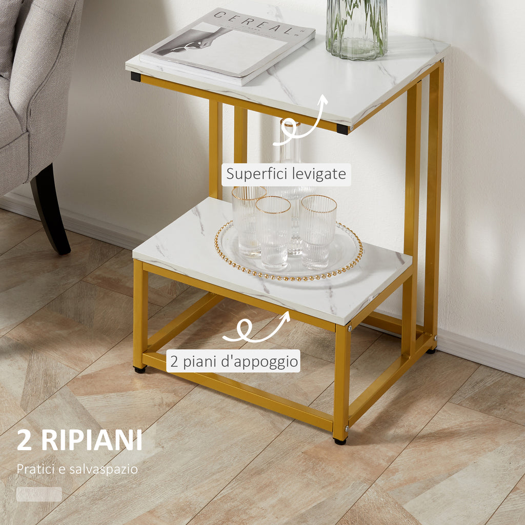 Bringen Sie mit diesem Couchtisch einen Hauch von Chic in Ihr Zuhause. Die elegante Kombination der Regale aus Metall mit Marmoroptik fügt sich perfekt in Ihr Interieur ein. Dieses Mehrzweck-Möbelstück besteht aus Spanplatten und strapazierfähigem Metall. Er ist äußerst vielseitig, Sie können ihn als Couchtisch, für das Wohnzimmer, als Nachttisch und überall dort verwenden, wo Sie einen funktionalen und eleganten kleinen Tisch wünschen.