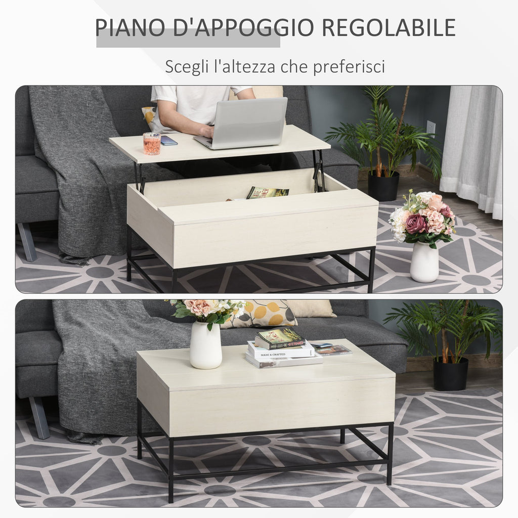 Couchtisch mit anhebbarer Platte 90x60,5x45,5 aus Metall und MDF Light Wood