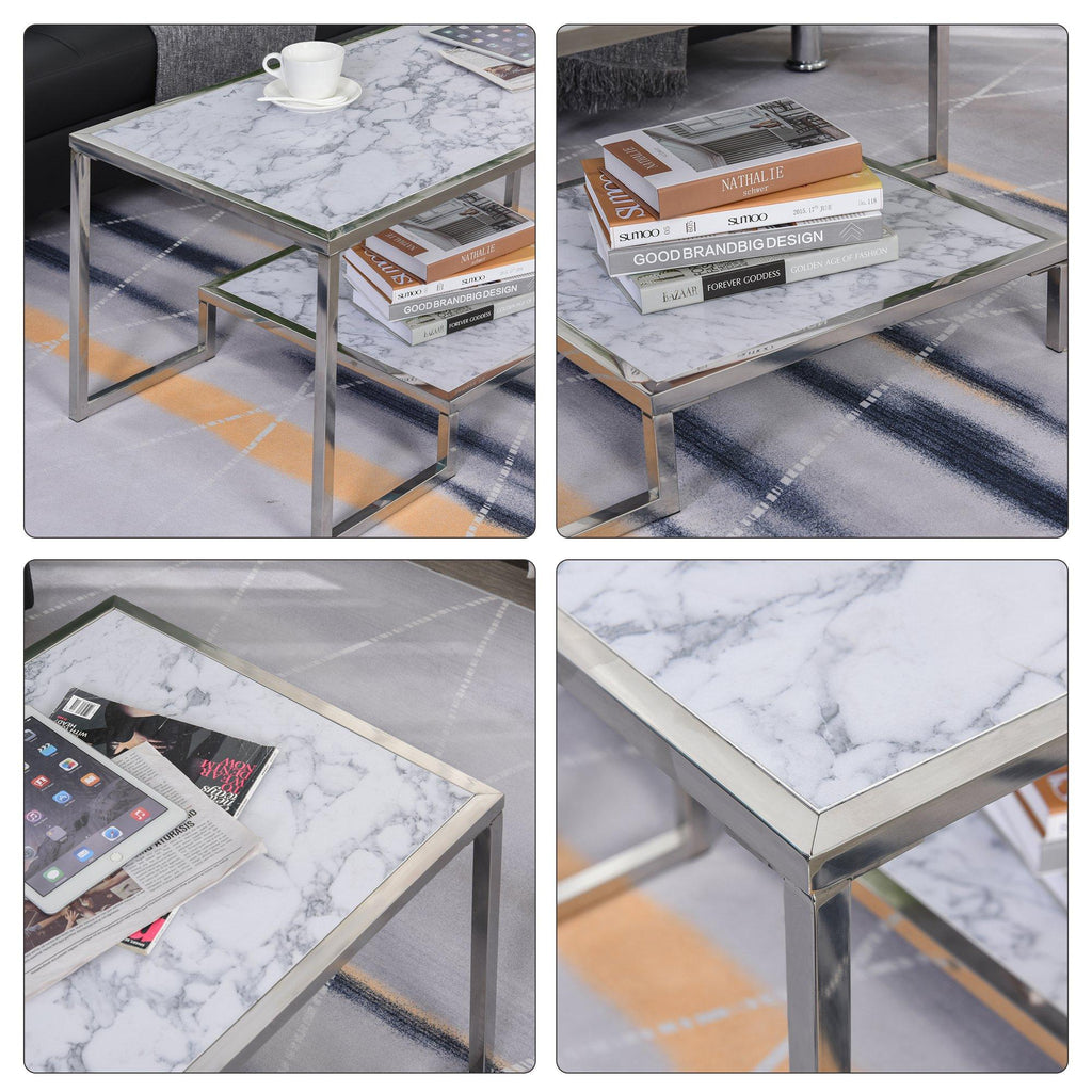 - Couchtisch mit Marmorplatte und Edelstahlgestell, garantiert einen sicheren Stand auf dem Boden