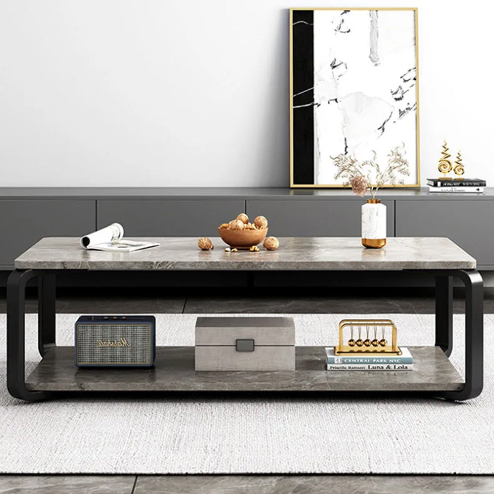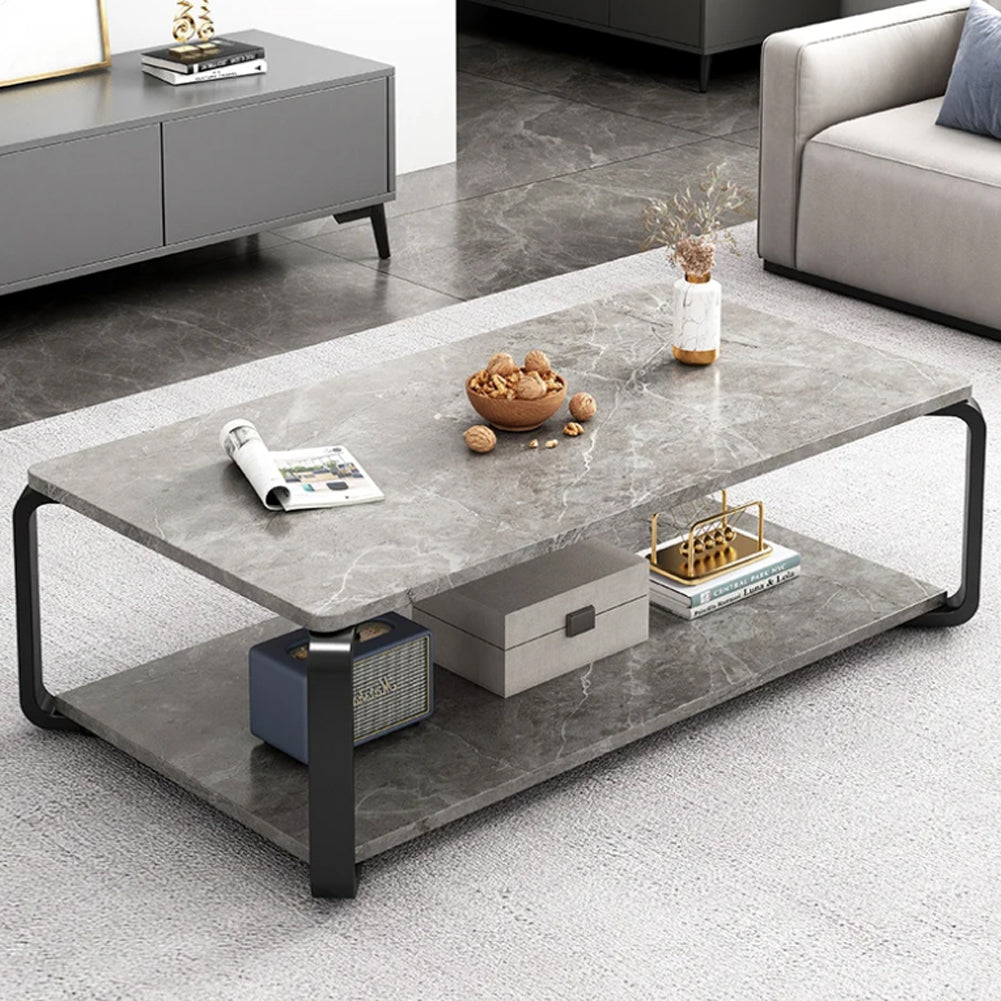 Tavolino Basso da Caffè 2 Ripiani Design Luxury Effetto Marmo Nero e Grigio Chiaro