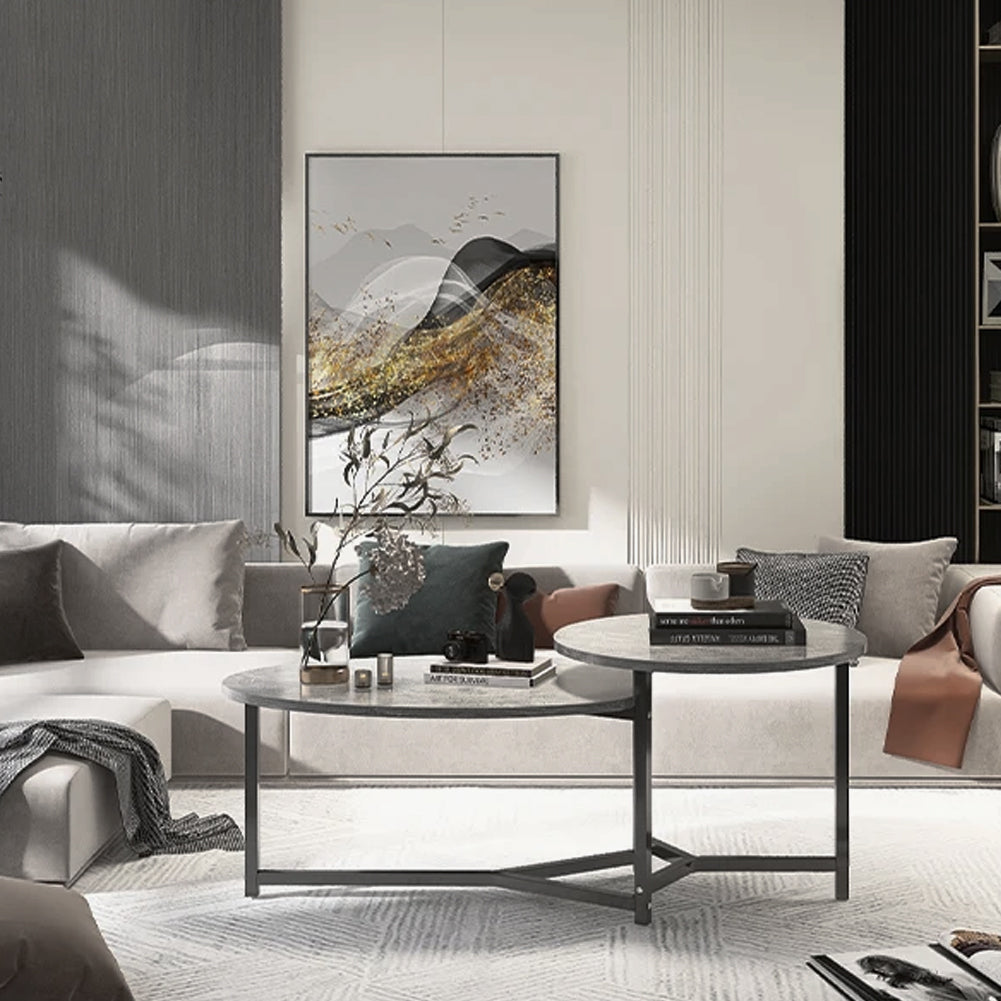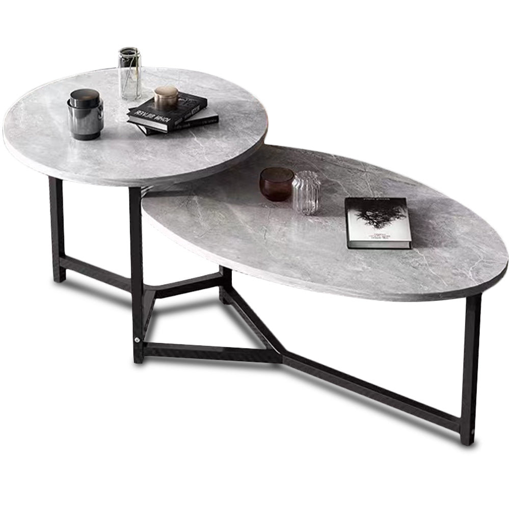 Tavolino Basso da Caffè 2 Ripiani Luxury Effetto Marmo Tavolo da Salotto Grigio
