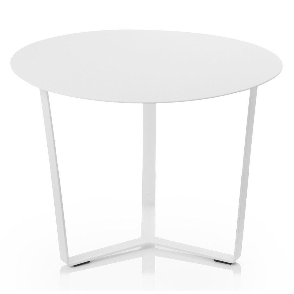 Niedriger Gartentisch Ø45 cm Flaschenhalter aus weißem Aluminium