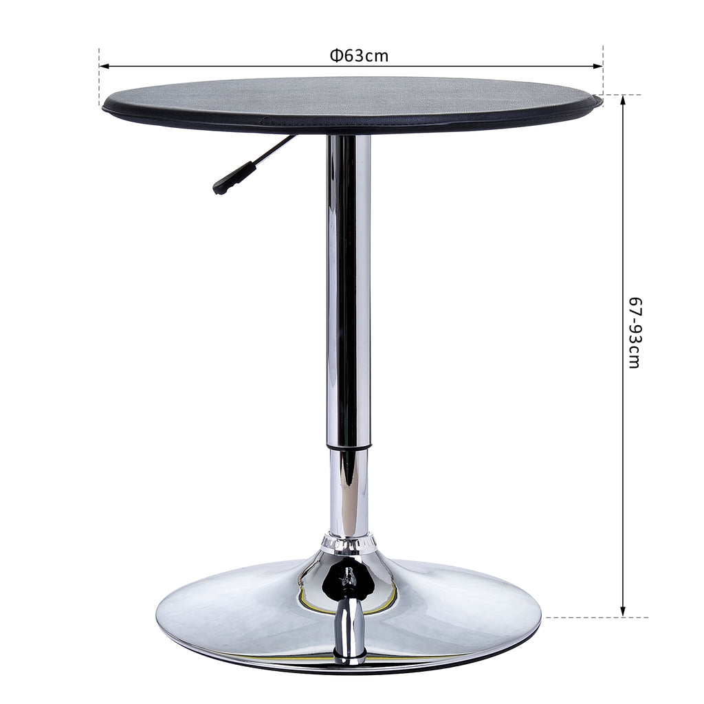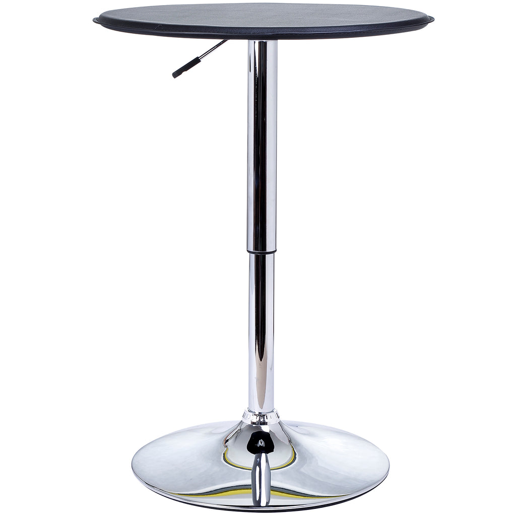 Vielseitigkeit ist das Stichwort. Dieser Stehtisch ist bequem und praktisch und die ideale Lösung für Ihre Veranstaltungen, Ihre Bar oder für Ihre Küche zu Hause. Er besticht durch sein modernes Design: Dank des verchromten Eisenfußes und der mit schwarzem PVC überzogenen Platte lässt er sich problemlos in jede Umgebung integrieren. Es wird Sie mit seiner praktischen Anwendbarkeit überzeugen: kompakte Größe und verstellbare Höhe.