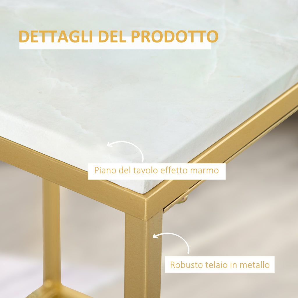 - Moderner und eleganter Couchtisch mit goldfarbener Struktur und Marmoreffekt-Finish