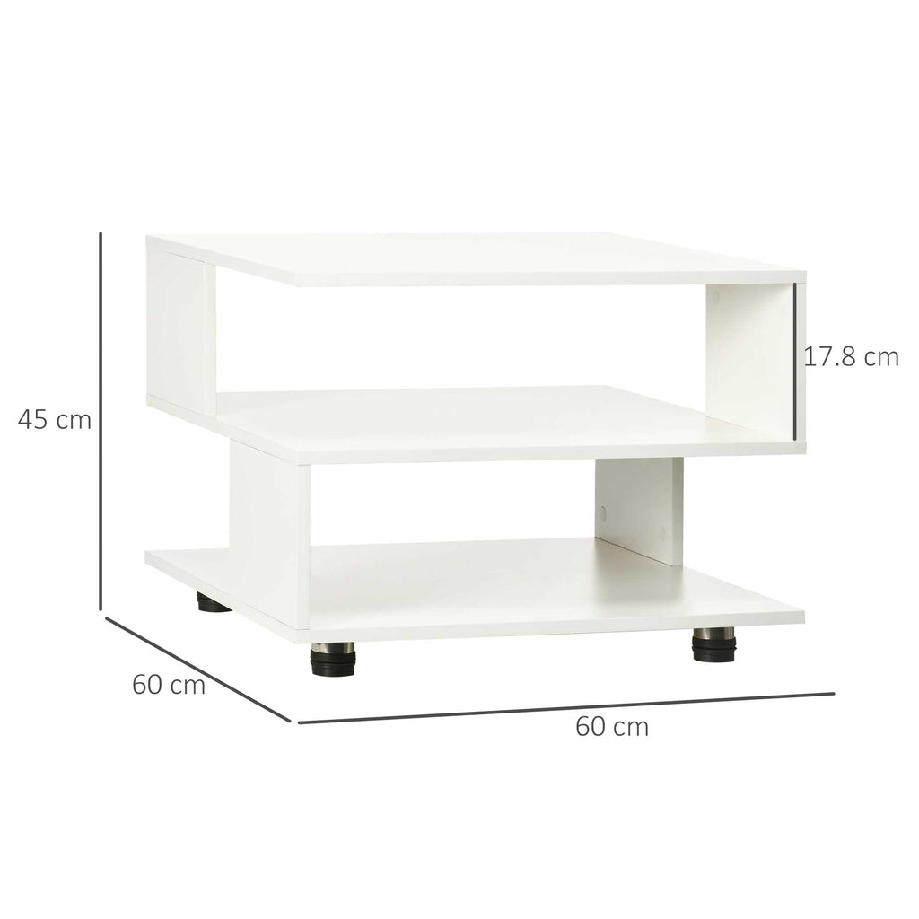 Tavolino da Caffè Asimmetrico 60x60x45 cm con Ripiani e Piedini Regolabili in Legno Bianco