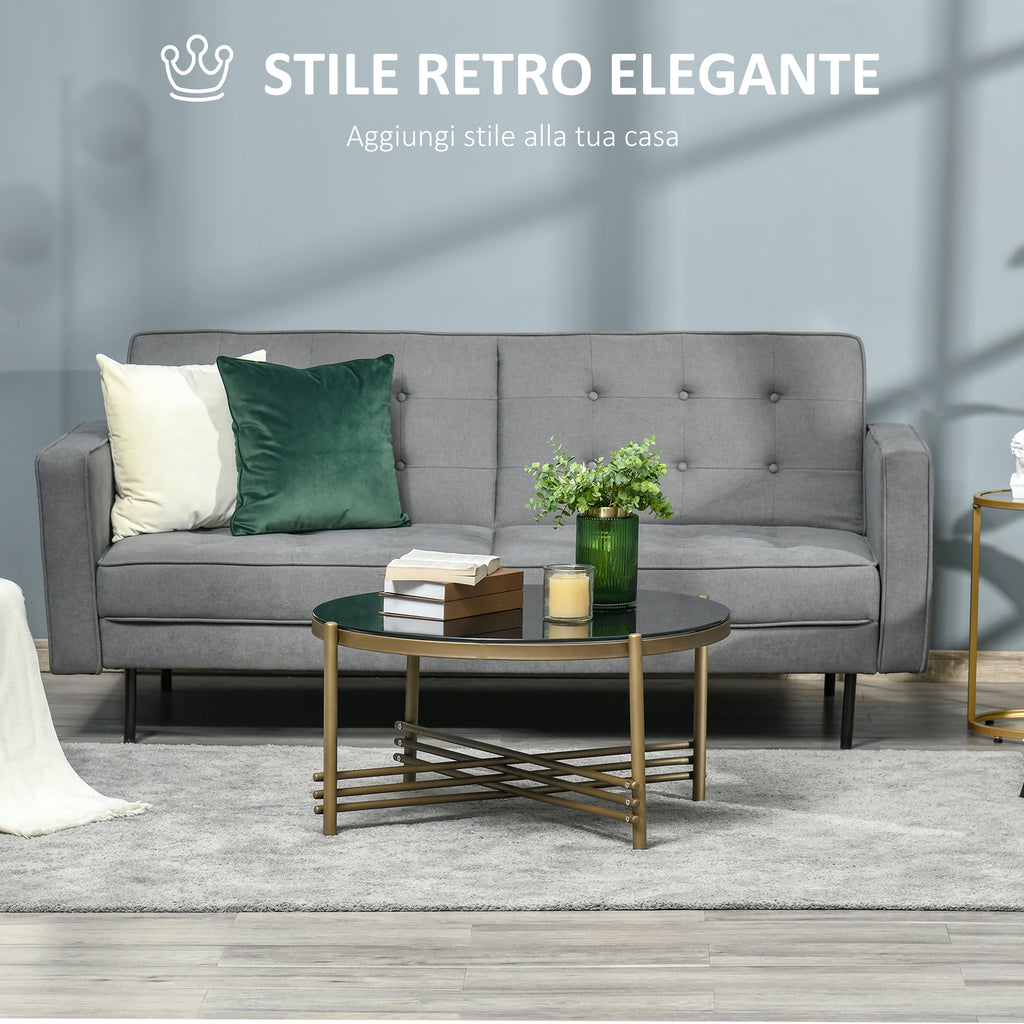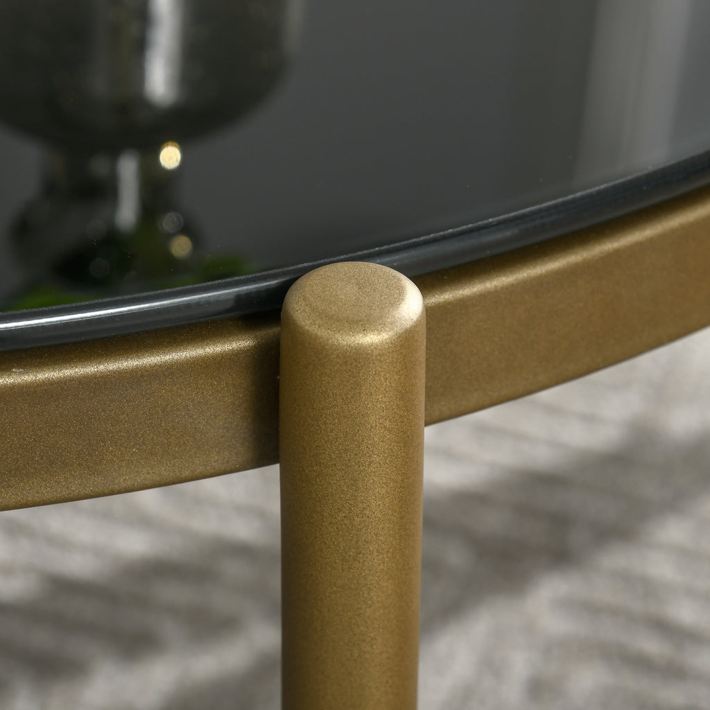 Couchtisch mit Platte aus gehärtetem Glas Ø85x41 cm Basis aus schwarzem und goldenem Metall