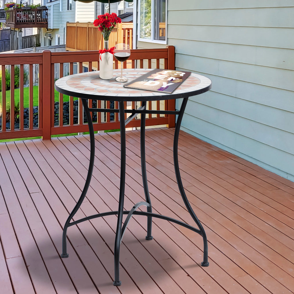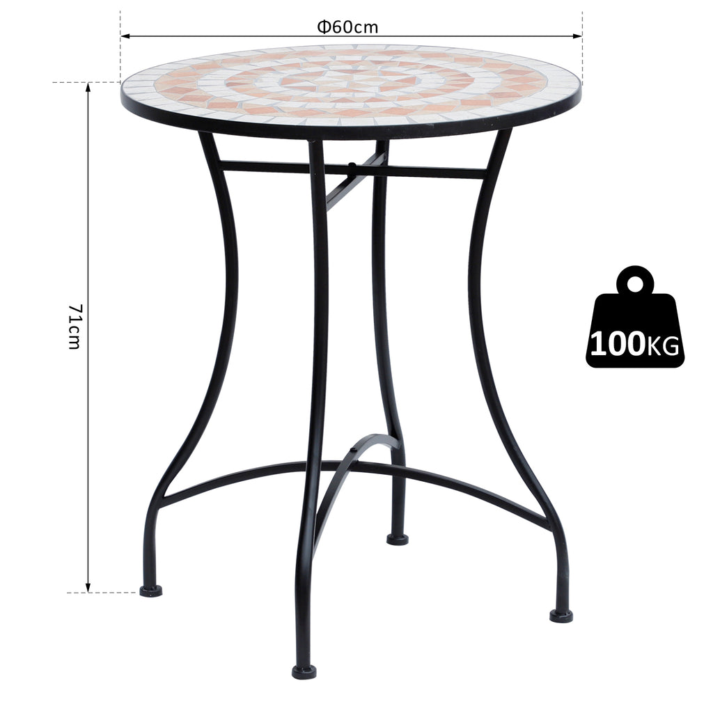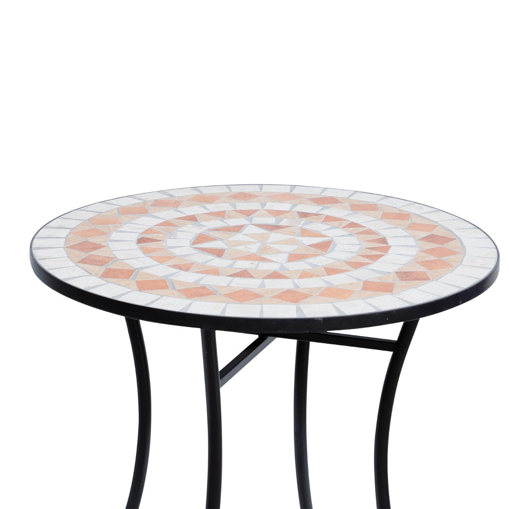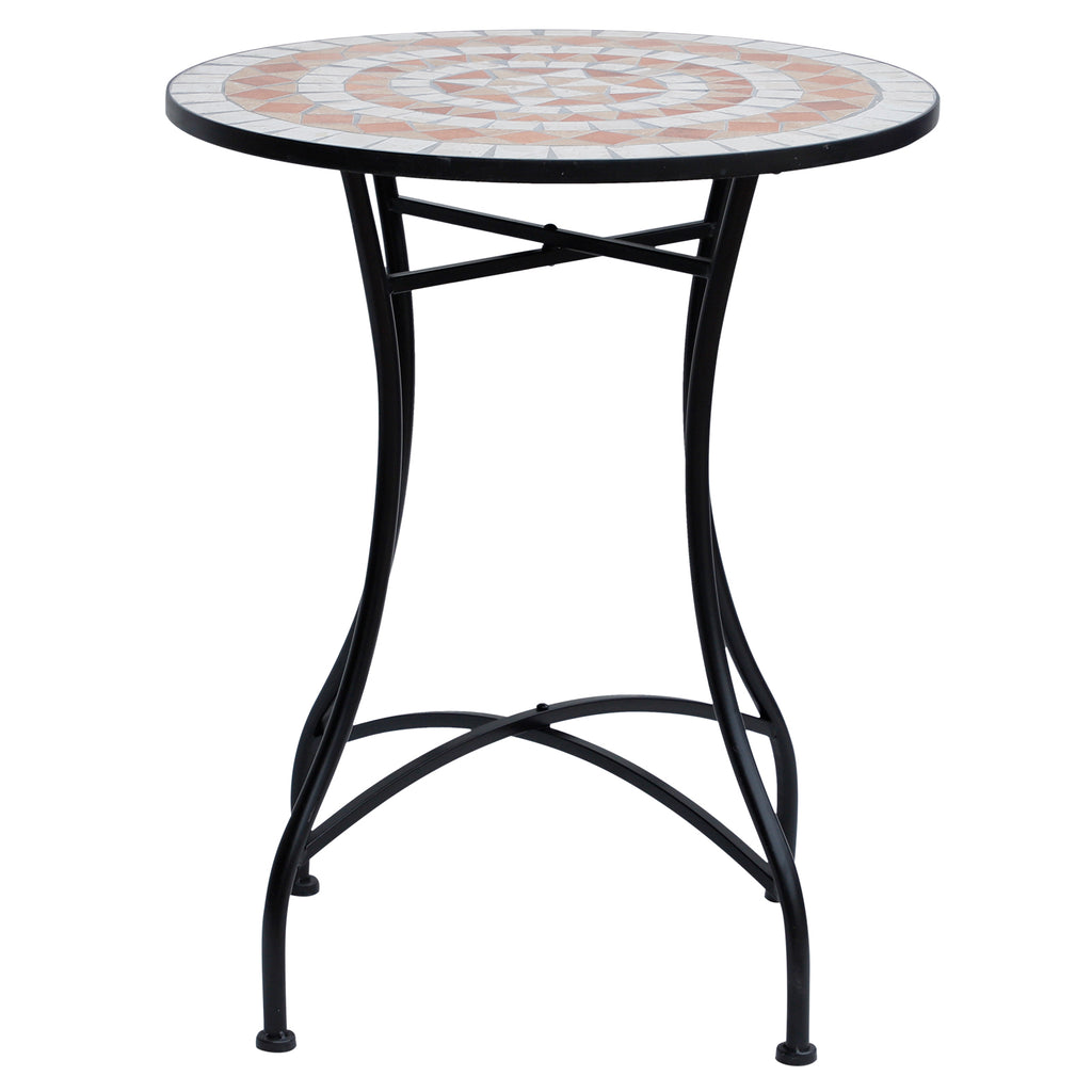 Garten-Couchtisch aus orangefarbener und weißer Mosaik-Keramik Ø60x71 cm