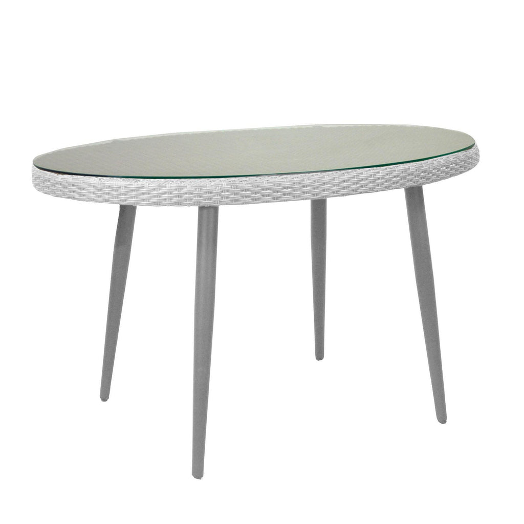 Garten Couchtisch Oval Polyrattan 128x73x76cm Adami Adila Cremeweiß