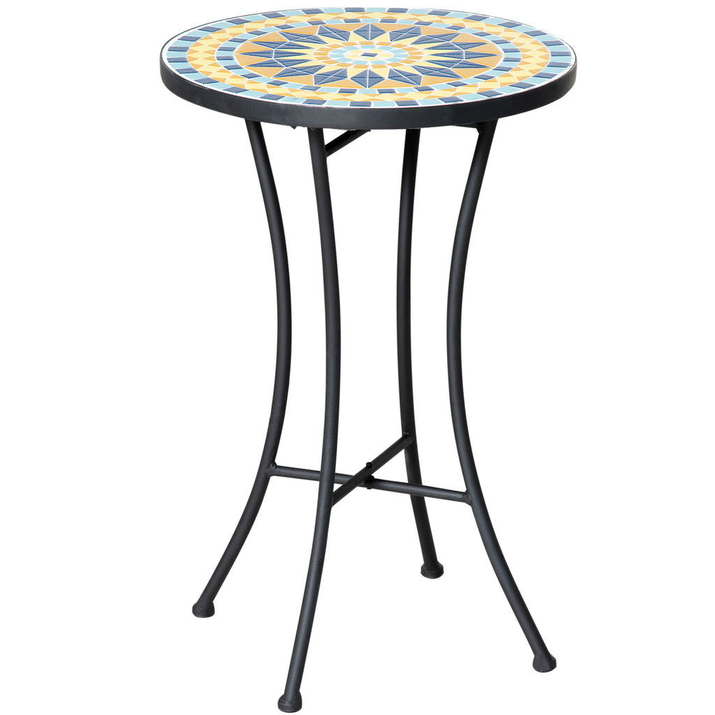 Wählen Sie diesen schönen Beistelltisch für den Außenbereich für eine einzigartige Ergänzung Ihrer Gartenmöbel. Der Couchtisch besteht aus einem robusten und langlebigen Metallrahmen, der mit Elektrophoreseverfahren pulverbeschichtet wurde, und verfügt über eine schöne Keramikmosaikplatte, die schmutzabweisend und leicht zu reinigen ist. Dieser Beistelltisch ist perfekt, um Ihren Tee abzustellen, während Sie an einem heißen Sommernachmittag mit Freunden oder der Familie entspannen.