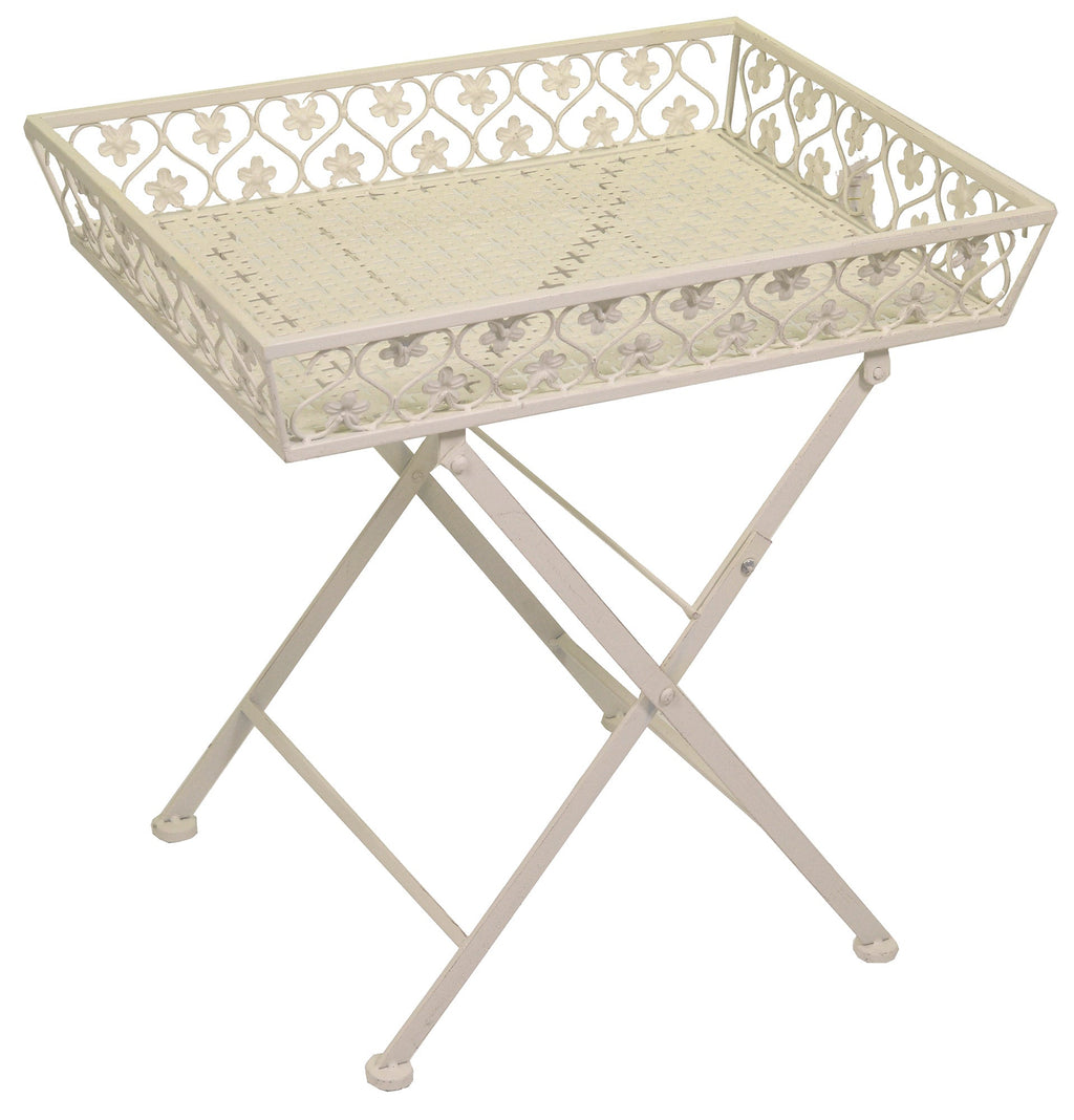Garten-Couchtisch aus weißem Letizia-Metall mit Tablett 56x42H58,5 cm