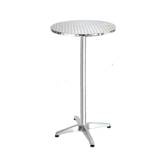 Hoher runder Tisch, Bar-Modell, mit Aluminiumplatte und -struktur, d. 60 cm, Bein in zwei Höhen teilbar cm. 70/110, Bein d. 58mm.