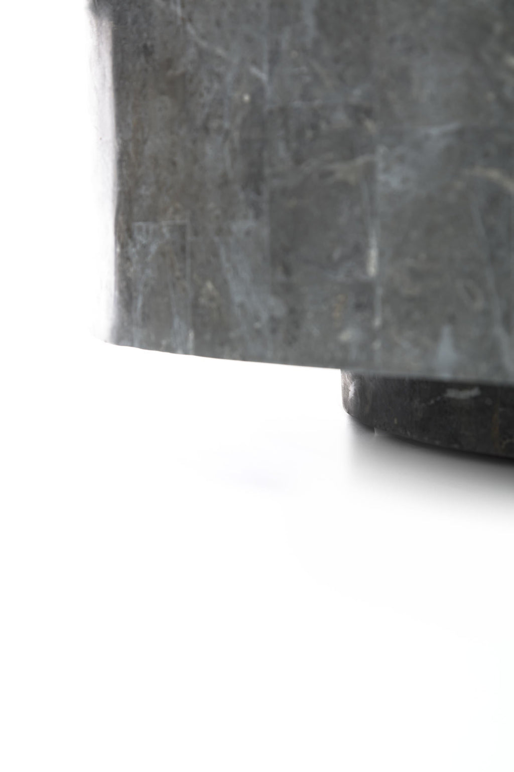 Blocktisch aus grauem dreieckigem Fossilstein