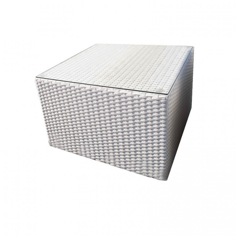 Couchtisch Dallas mit Glas 60 x 60 x 42,5 h cm aus weißem Geflecht