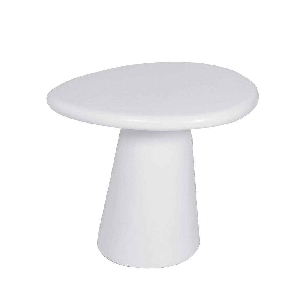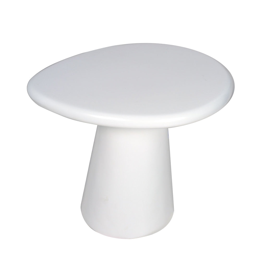 Originale tavolino in vetroresina, dal particolare design, il top, non è il solito cerchio perfetto, ma ha una forma leggermente irregolare, la base è un cilindro, anch'esso irregolare. La sua forma particolare unita al materiale in cui è realizzato lo rendono ideale per ambienti interni e esterni.