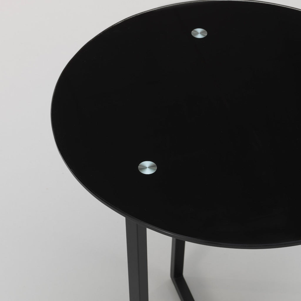 Couchtisch aus Metall Ø49x61,5 cm mit schwarzer Ayan TFT Glasplatte