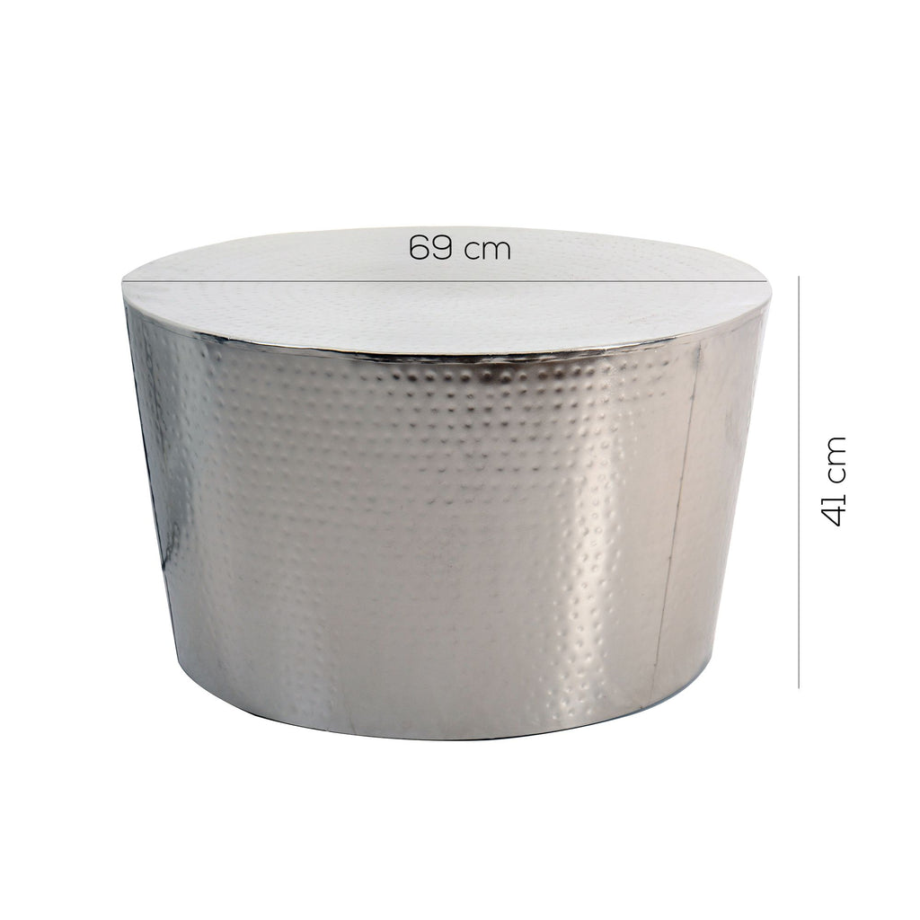 Tavolino originale e dal design unico, Matai, dalla forma monolitica, è un cilindro la cui base è più piccola della sommità. Completamente realizzato in metallo, il perimetro e il top sono puntellati, rendendo il tavolino Matai un eye catcher perfetto per soggiorni moderni.