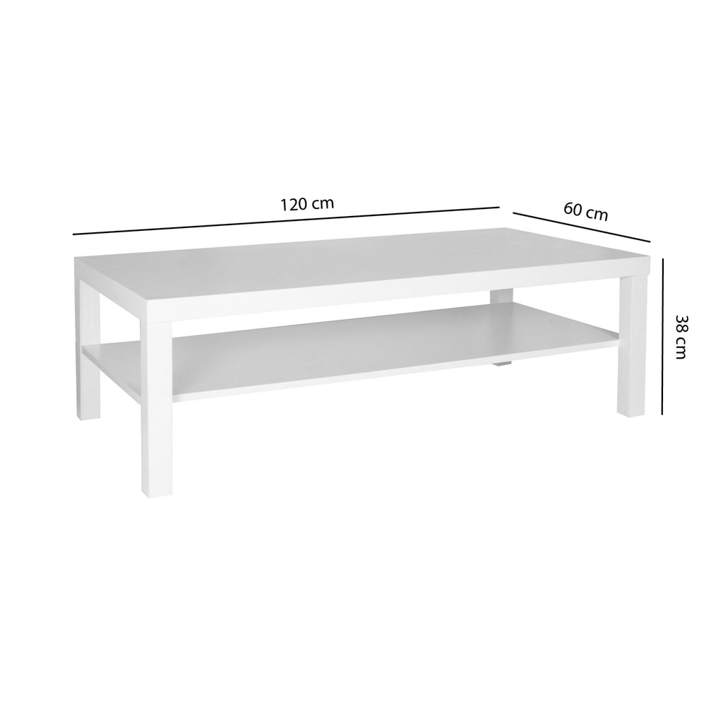 Tavolino basso di forma rettangolare con struttura in legno con due ripiani finitura bianco opaco