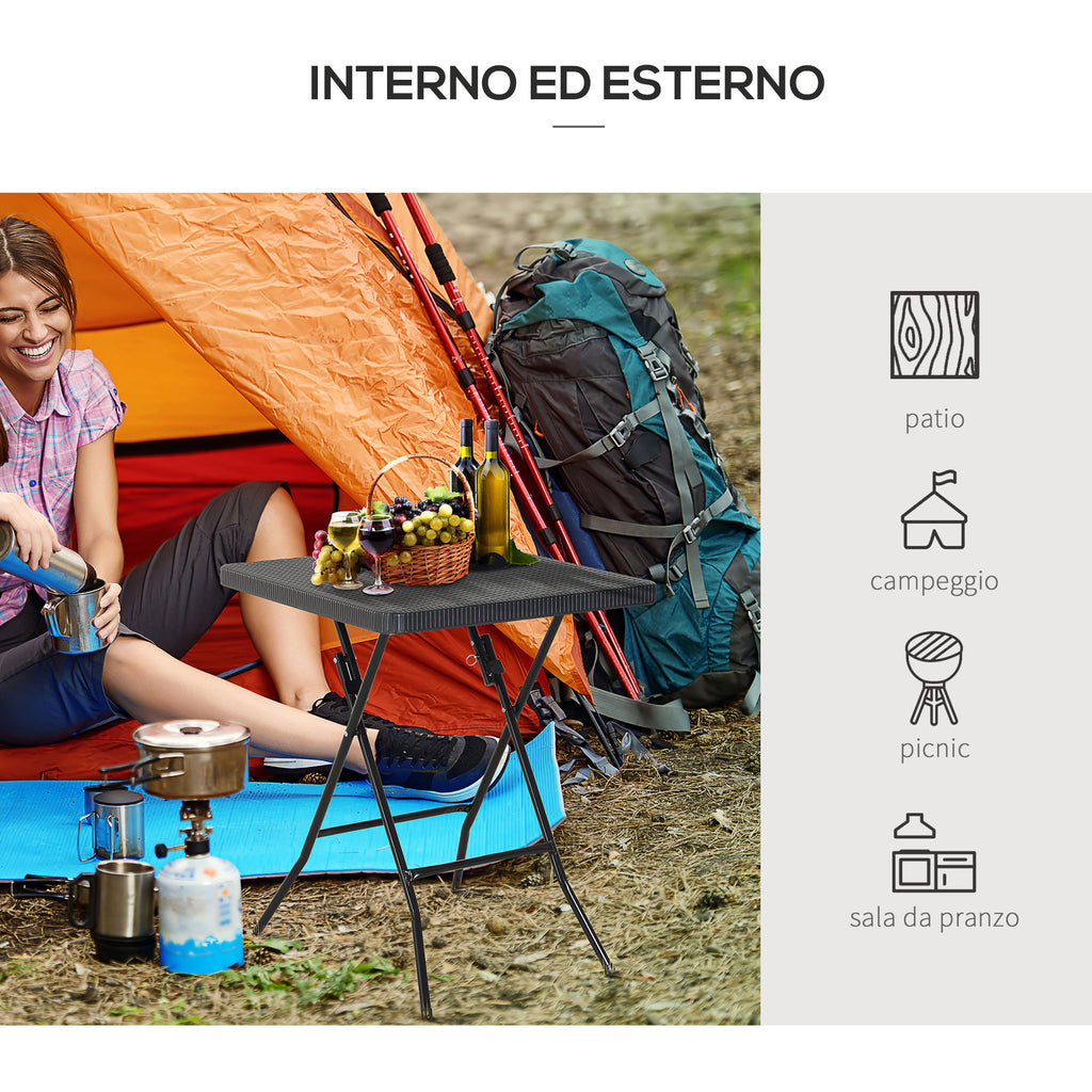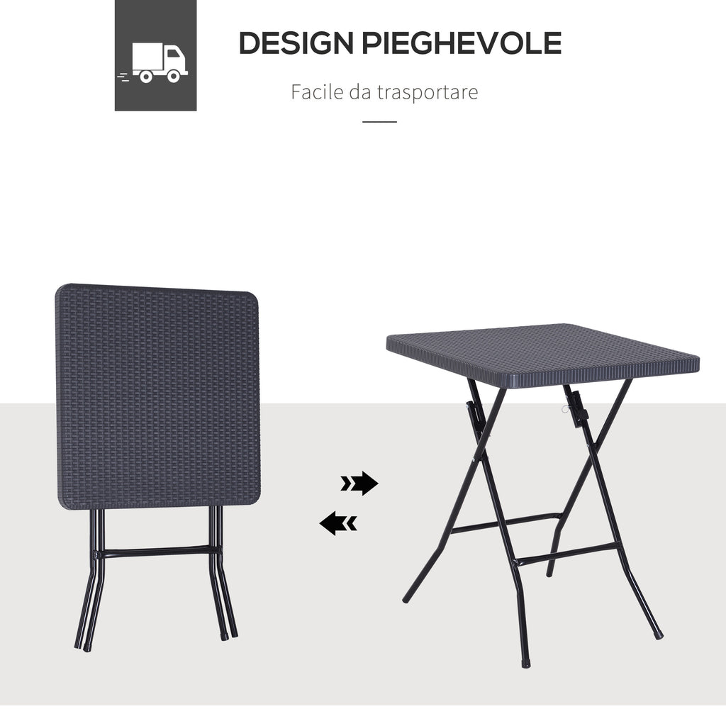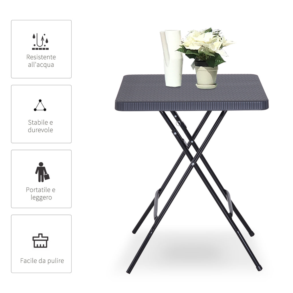 Haben Sie einen kleinen Balkon? Dieser klappbare Couchtisch ist genau das, was Sie brauchen! Seine Struktur ist robust und besteht aus einem Metallrahmen und einer Tischplatte aus HDPE-Kunststoff mit Rattan-Effekt. Zwei widerstandsfähige und wasserdichte Materialien, die für den Einsatz im Außenbereich entwickelt wurden. Darüber hinaus ist es dank seiner kompakten Größe und Faltstruktur bequem und vielseitig. Sie können es schließen, wenn Sie es nicht brauchen, und es wieder öffnen, um ein schönes Frühstück auf der Terrasse oder einen Aperitif mit Freunden zu genießen.