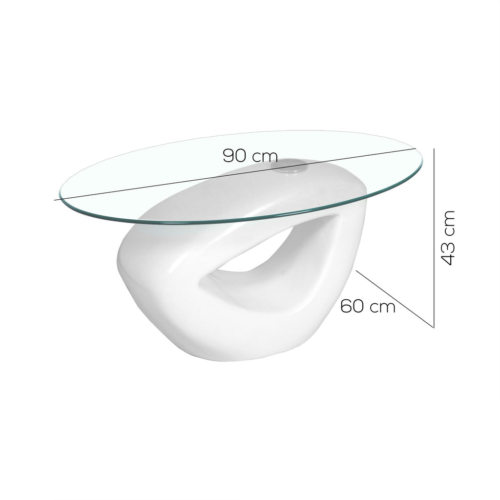 • Tavolino in vetroresina. • Verniciatura in tinta bianca. • Top in vetro temperato trasparente. • Adatto ad ambienti interni ed esterni. COMPOSIZIONE: • Vetroresina e vetro DIMENSIONI: • 90x60x43