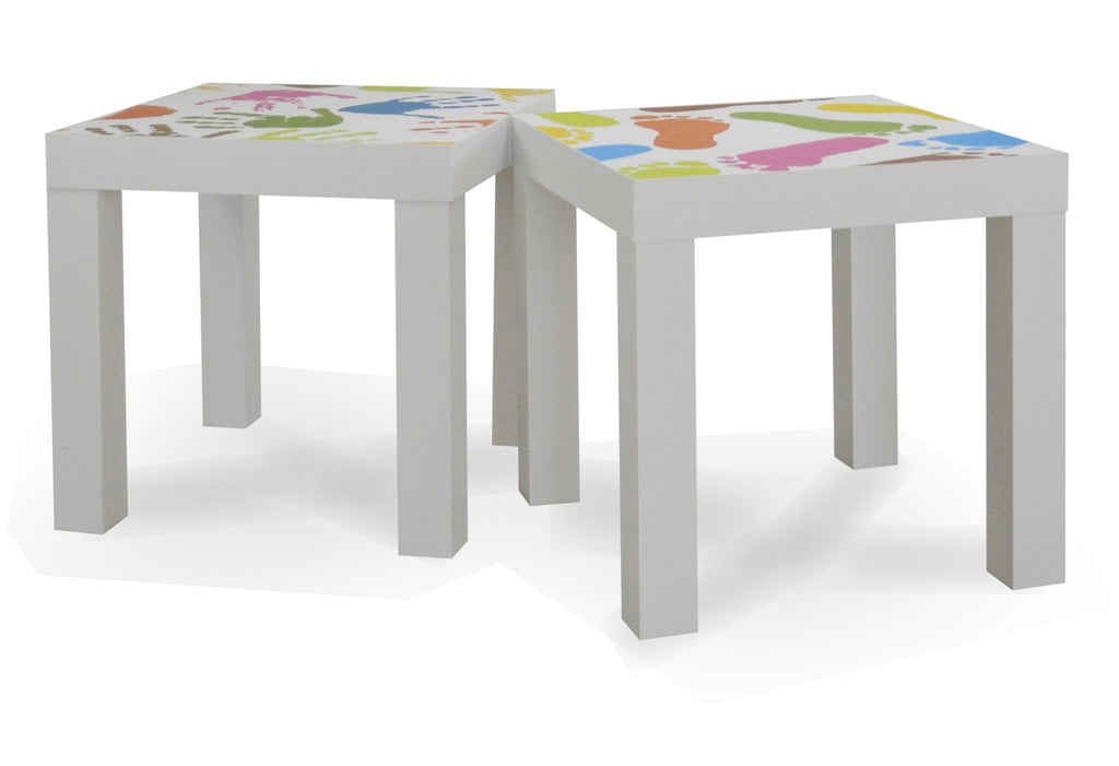 Quadratischer Couchtisch 39 x 39 x 37 cm aus rubinweiß lackiertem Holz mit Hand- und Fußmuster