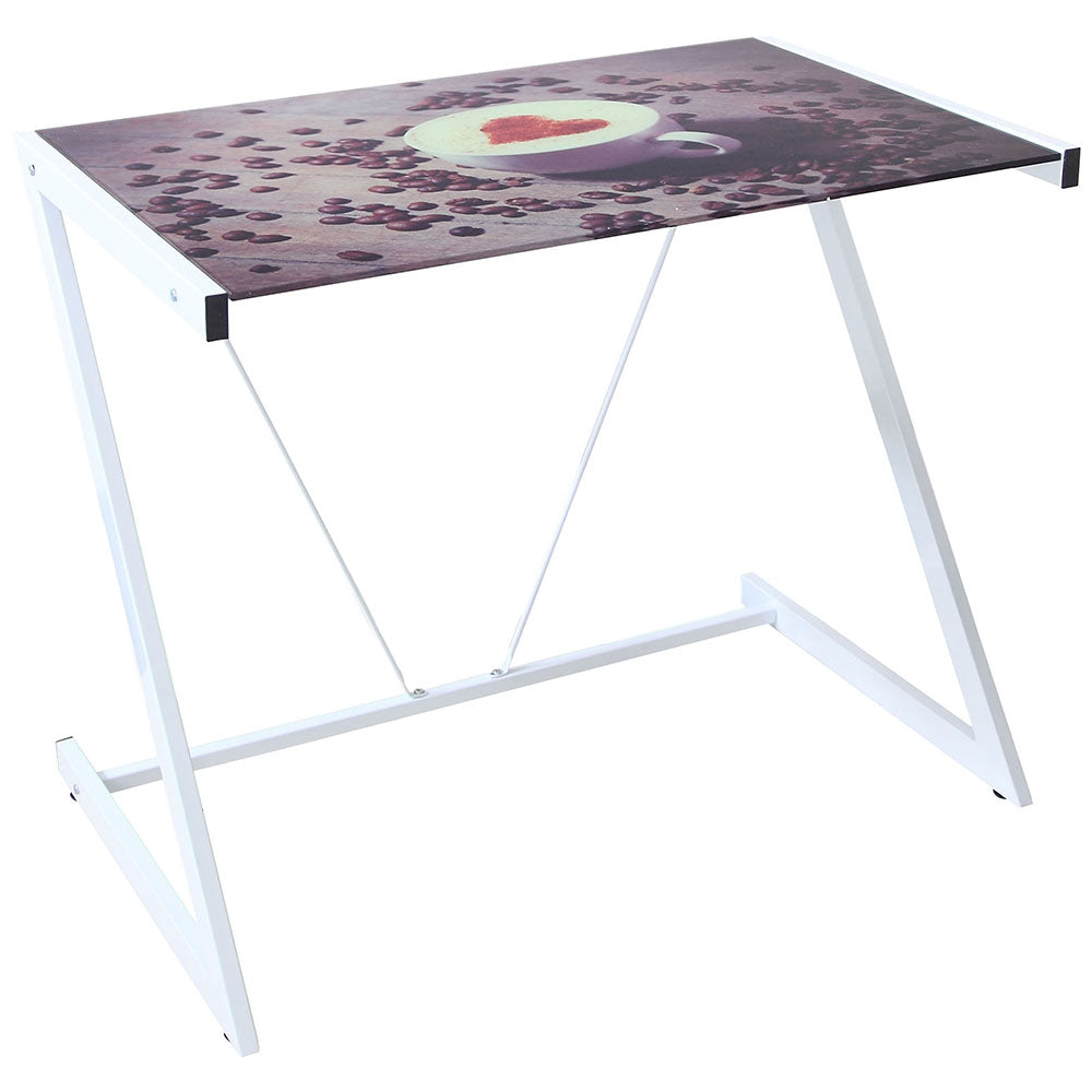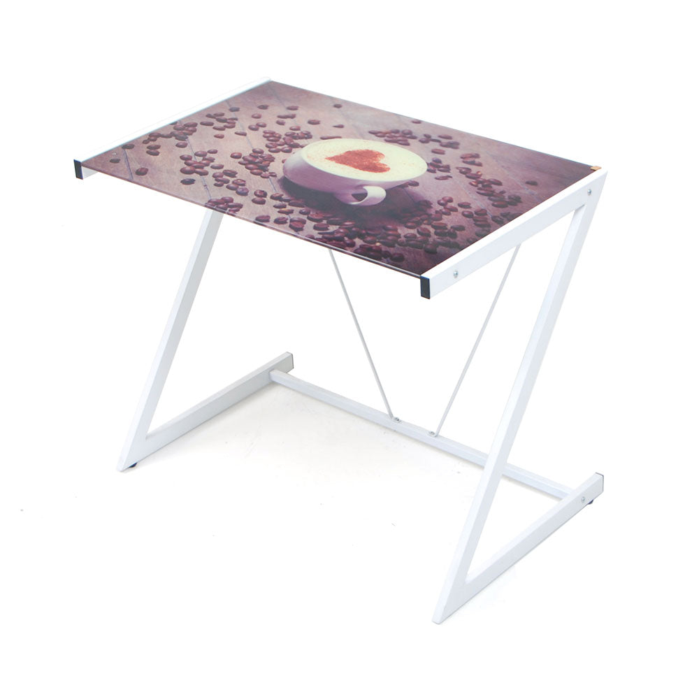 Eisen-Schreibtisch mit Bild-Cappuccino-Tischplatte aus gehärtetem Glas