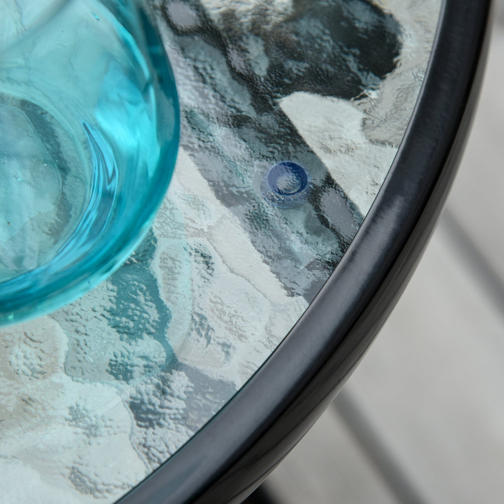 Runder Gartentisch aus Metall Ø45x50 cm mit Ablage aus schwarzem Glas