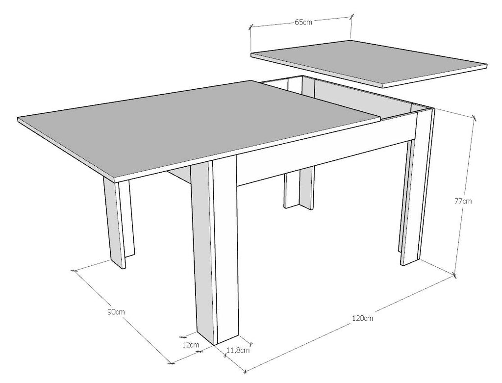 Dimensioni: cm. L.120 P.90 H.77 (allungabile a L.180 con una allunga).