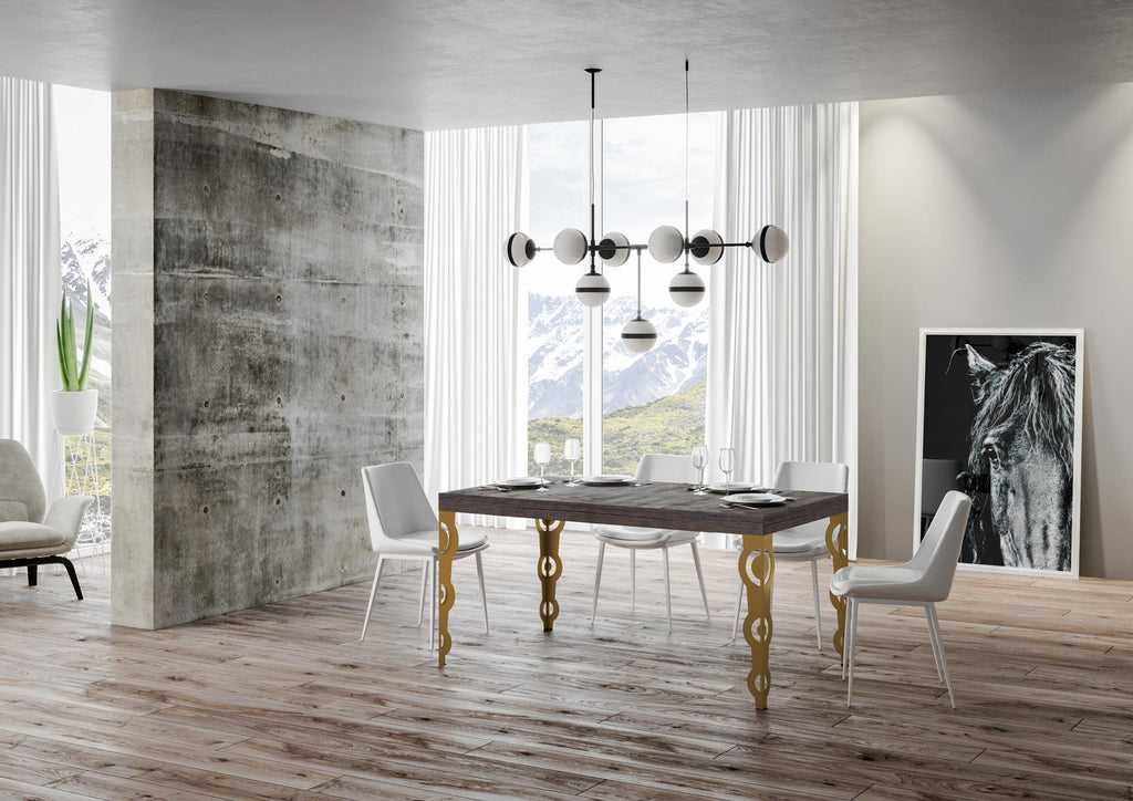 Il Tavolo Karamay 130 Allungabile è una linea dallo stile stravagante e raffinato, grazie alle particolari decorazioni delle gambe. Le gambe in metallo verniciato è in grado di garantire solidità alla struttura, anche quando completamente esteso. Si adatta ad ogni esigenza di spazio, grazie al particolare sistema di allunghe che gli permette di estendersi fino a 234 cm. Le allunghe presentano la stessa finitura del piano sono alloggiate sotto al piano. Made in Italy con materiali 100% italiani.