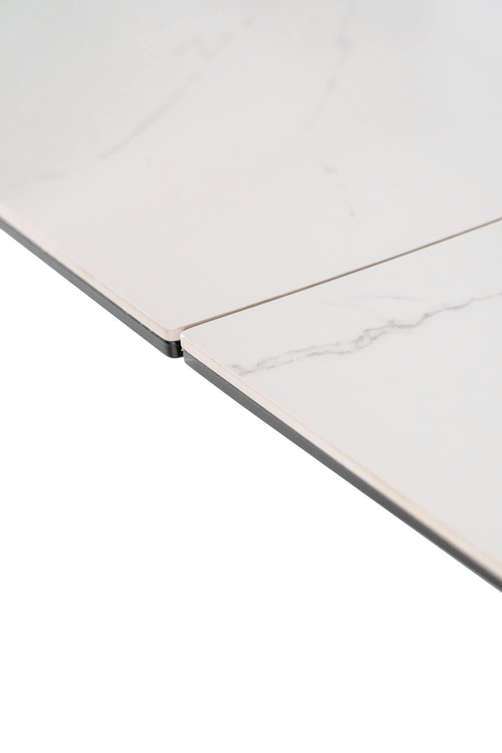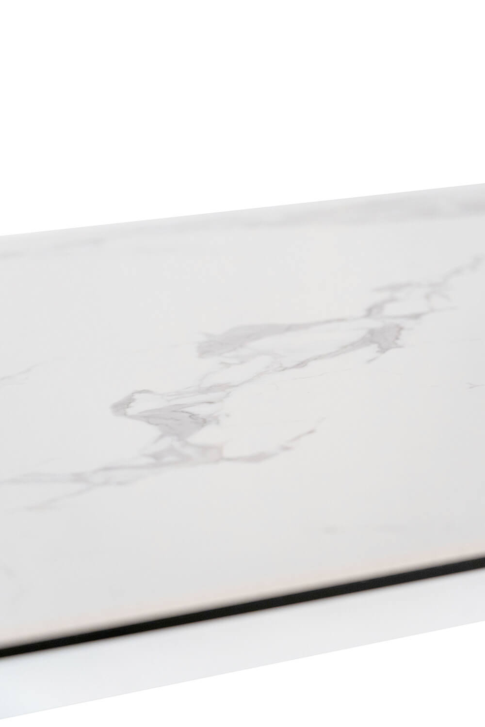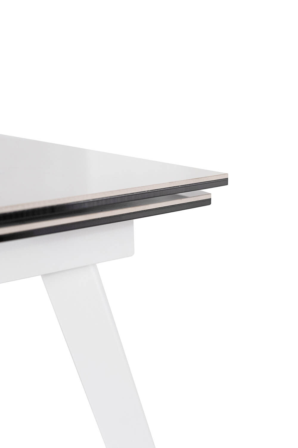 Ausziehbarer Tisch 140/170/200x90x76 cm aus Metall mit Keramikplatte auf weißem Glas