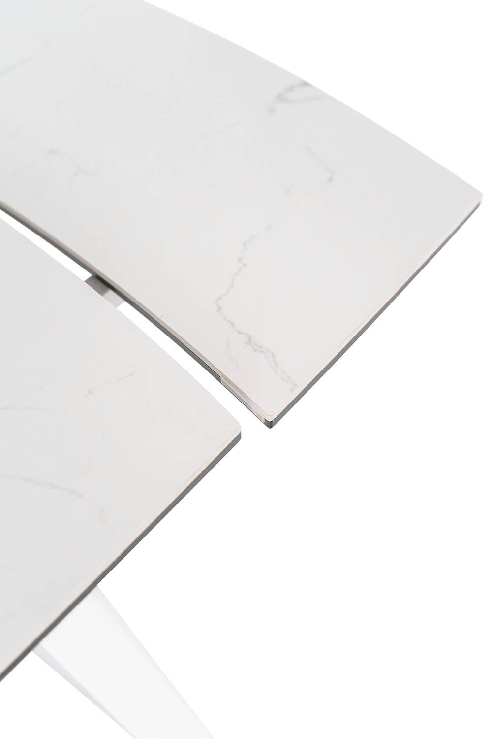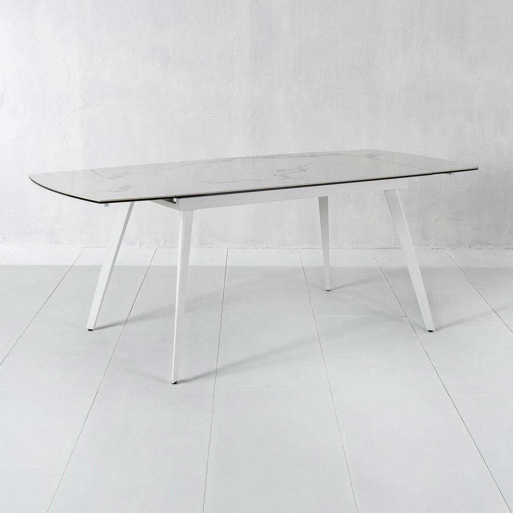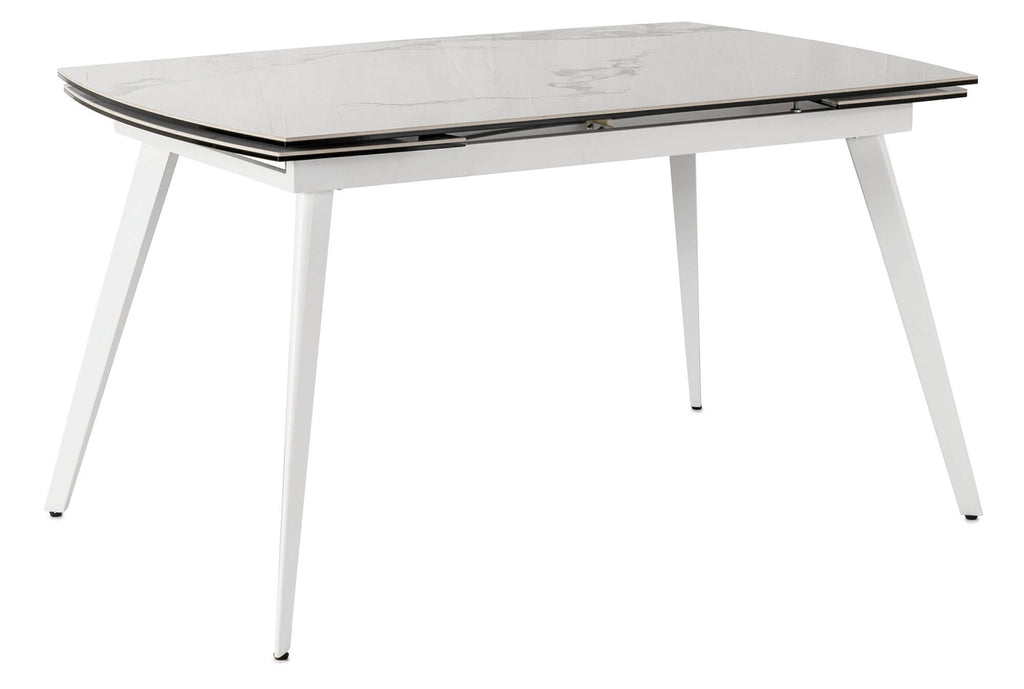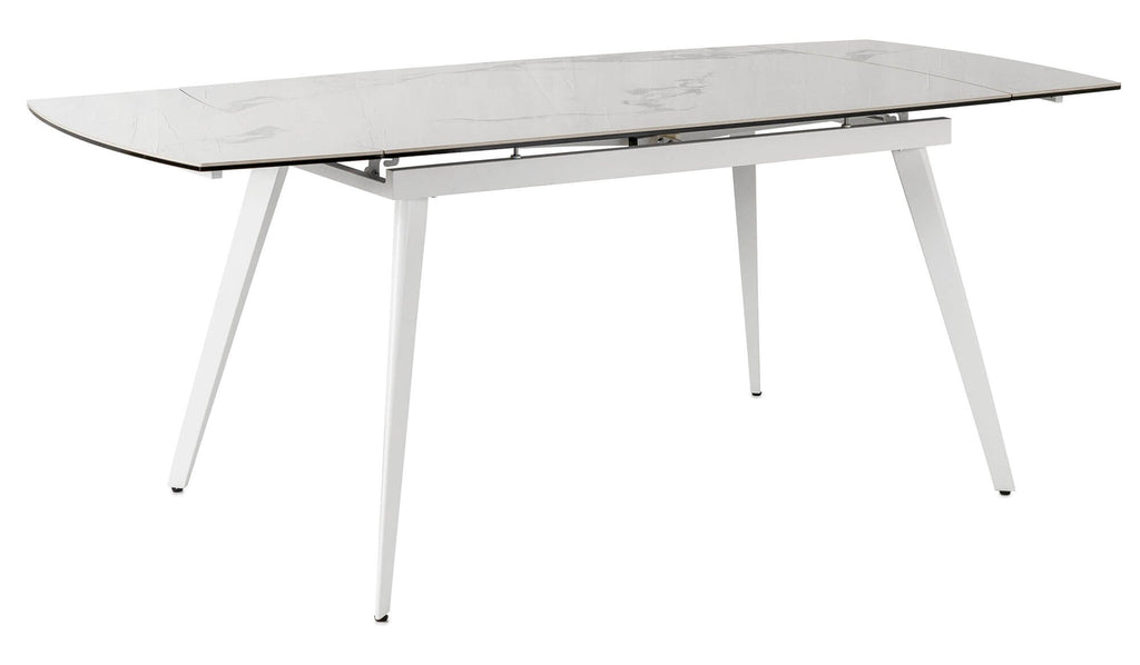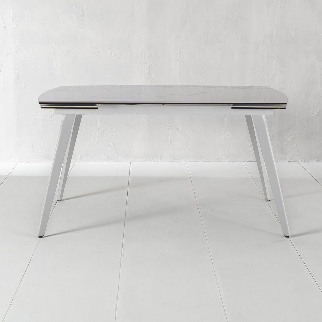 Ausziehbarer Tisch 140/170/200x90x76 cm aus Metall mit Keramikplatte auf weißem Glas